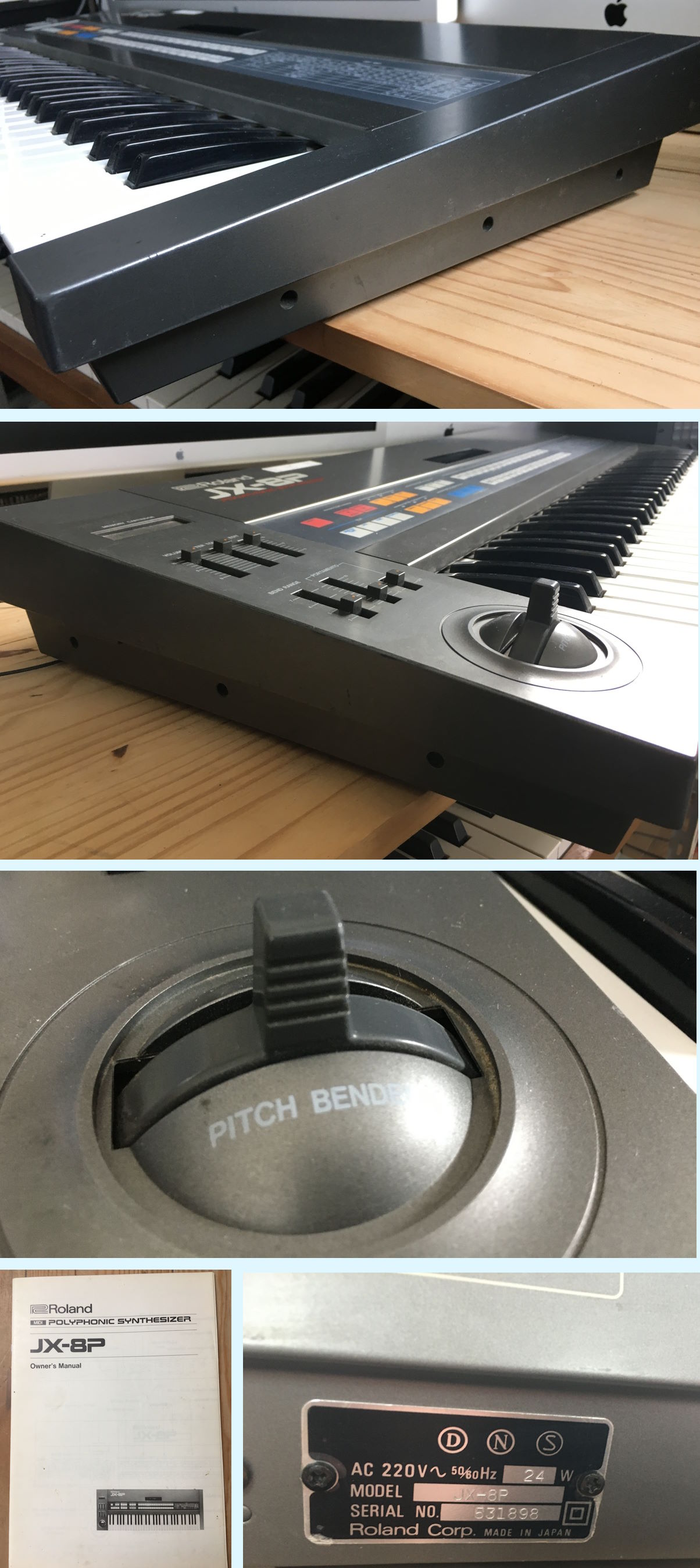 Classic smooth analogue sounds. I hadn't played this for some time, and when I was checking it out, one or two of the keys were a bit reluctant. So some minor servicing needed. European (220V) mains, with the rectangular two-pin lead that Roland decided was a good idea in this era. The lead is included, and the original owner's manual.