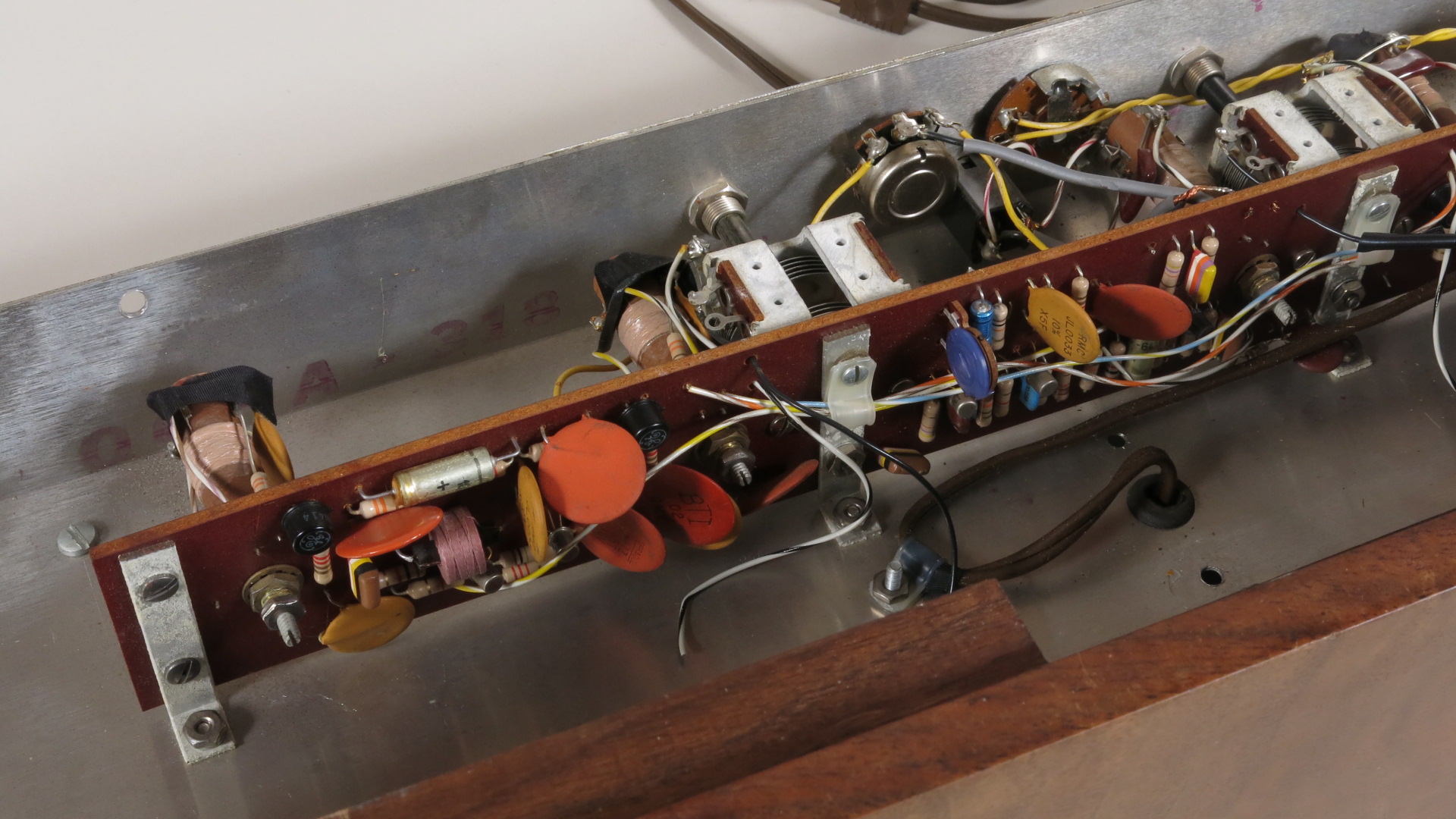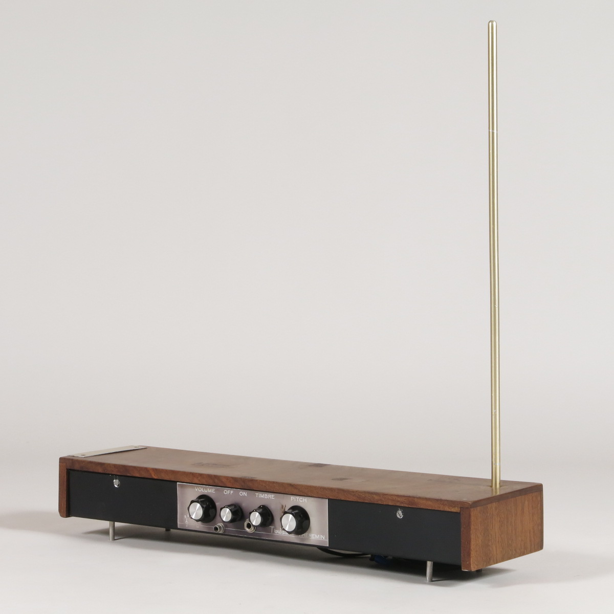 ***notice that the theremin needs service*** Up for sale is my R.A. Moog Co. Troubador Theremin with serial number 1001. Which means it's the first one made, probably by Bob Moog himself on 3 October 1969. Unfortunately it's not working. One of the coils is broken and the power lead needs work. It's sold as-is, untested. I've been looking years for a second example to fix this one, without result so far.. Optically there are signs of use, some screws are missing, some wear and tear at the front panel and bottom plate. |