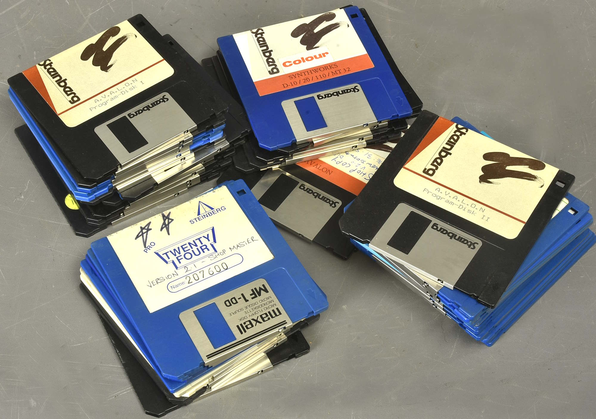 A massive collection of c. 1986-90 software disks believed to have come from the famous Argents music store in London. Virtually all are Steinberg, from the Pro-24 / Cubeat* / Cubase start era - arguably one of the main sources of the revolution in music which spawned all the subsequent in-the-box stuff - especially in Europe. *Cubase was originally going to be called Cubeat - see the three ultra-rare disks included (one close-up in pic 4) but had to be changed for copyright / trademark reasons. All untested, sold as seen, but a potentially great fount of historical / retro material. Packing 3GBP. |