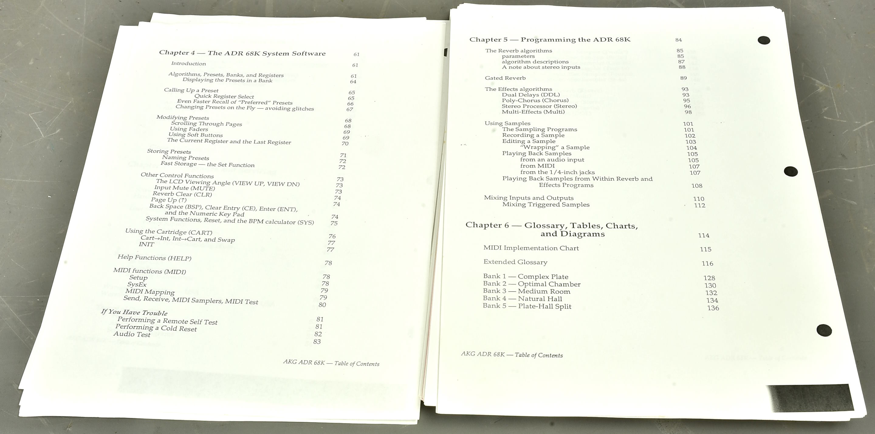 Massive owner's manual for the ADR 68K digital reverb & effects machine - actually after AKG had bought up Ursa Major, but written by Christopher Moore and Paul Lehrman for the Ursa Major-designed unit. Photocopied but the original manuals were believed to be photocopied too. Packing 3GBP. |