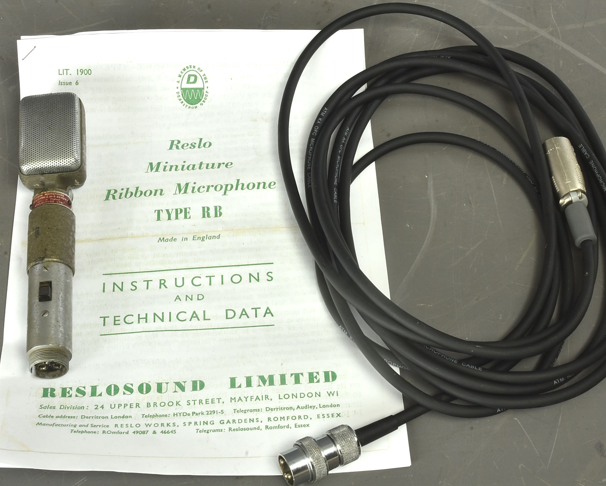 Vintage Reslo microphone from Beatles / Cavern era early 60s - see https://www.youtube.com/watch?v=0nMDUXSHEG0 for background info. These ribbon mics were really designed for studio more than live use - especially home studios, as tape recording took off in a big way. But as the ribbon gave a figure-of-eight pattern they could be used by two singers singing obliquely across the mic (as John and Paul used to do so memorably) - This example is switched, and has a good XLR lead. Working but like all mics of this age (over 60?) could do with a service. Packing 6GBP. |