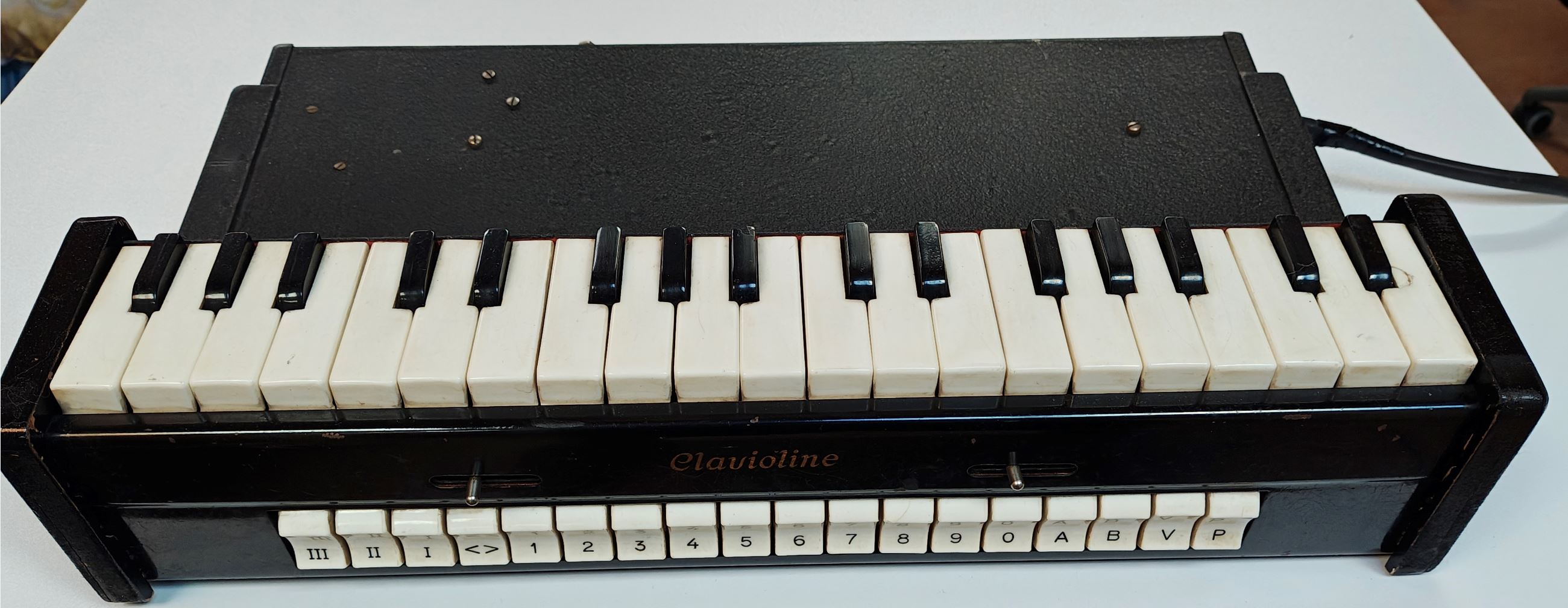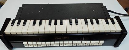 The Gibson Clavioline is a single manual mini-key piano attachment with a tube preamp and amplifier, made from about 1934-1965. The sound made famous in Telstar and in The Beatles' 'Baby I'm A Rich Man', it uses a basic square wave.
