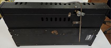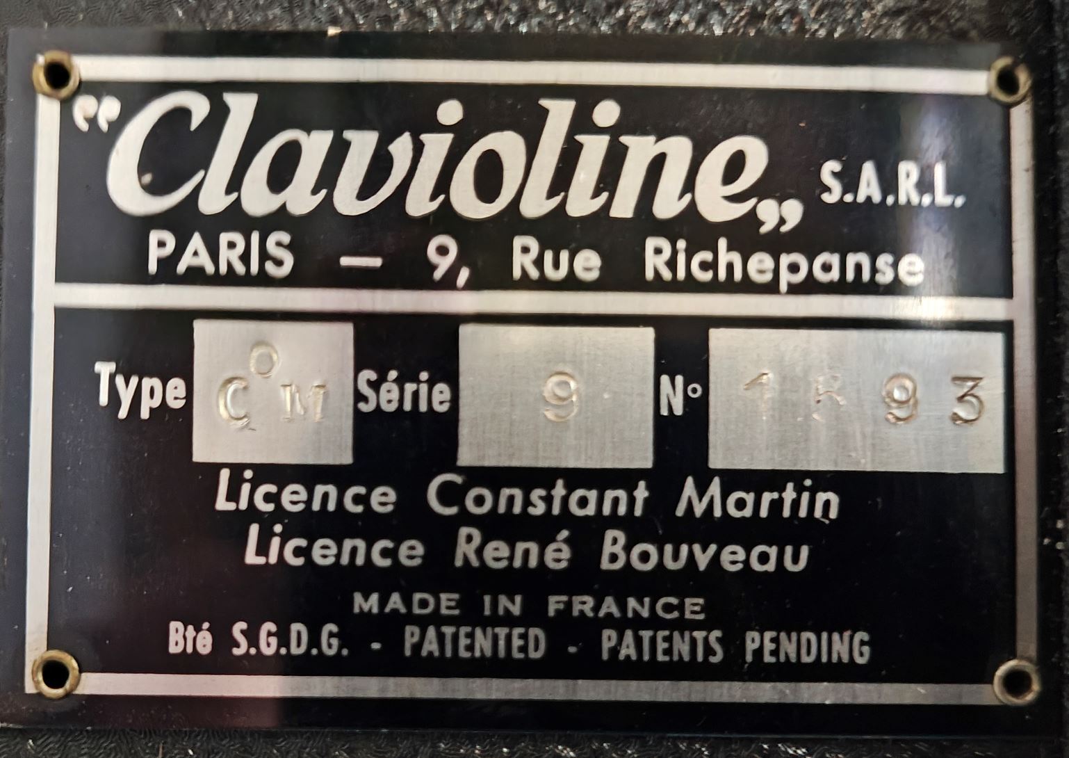 The original design was by Constant Martin in France, and many companies licensed it. Selmer were perhaps the most famous maker in the UK, but Jorgensen in Germany was another, and Gibson in the US. The common design feature was a metal-cased keyboard, complete with internal tube tone-forming circuitry. The case attached by metal sliders to rails that could be screwed to the underside of your piano keyboard - or you could use the Clavioline as a stand-alone instrument on a metal stand. There is a Set of rocker switches underneath the keyboard for tone choice. The tube amplifier and speaker are in a case, which the Clavioline keyboard folds into for transport.