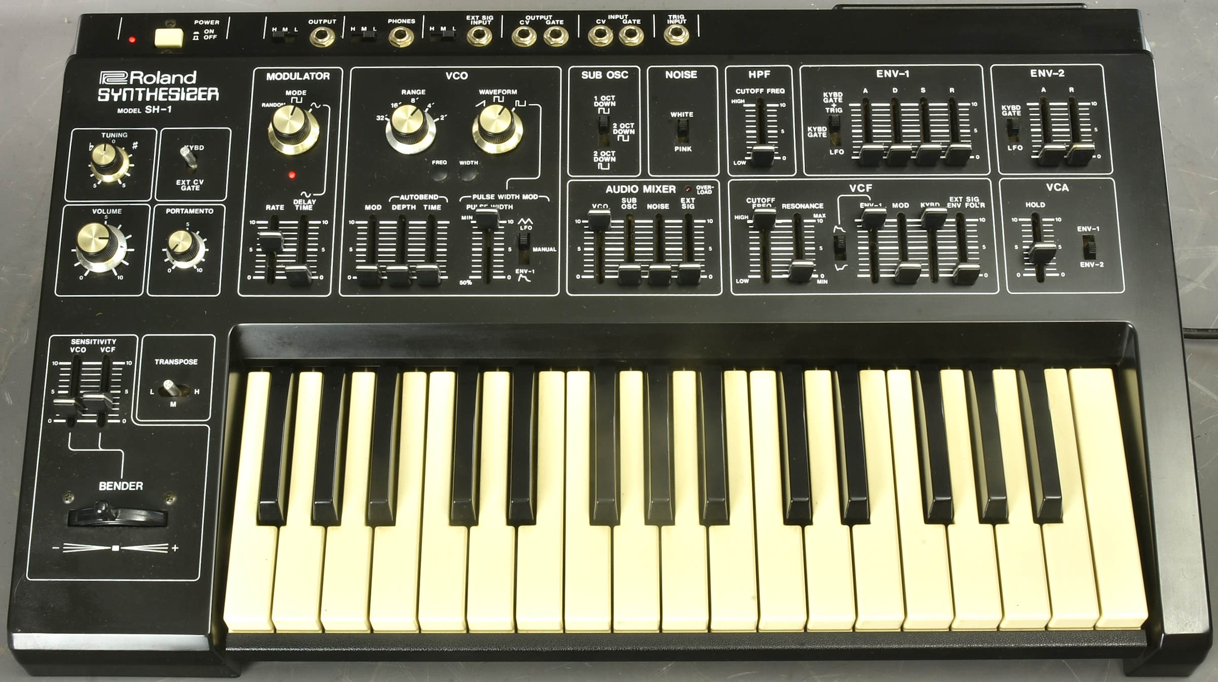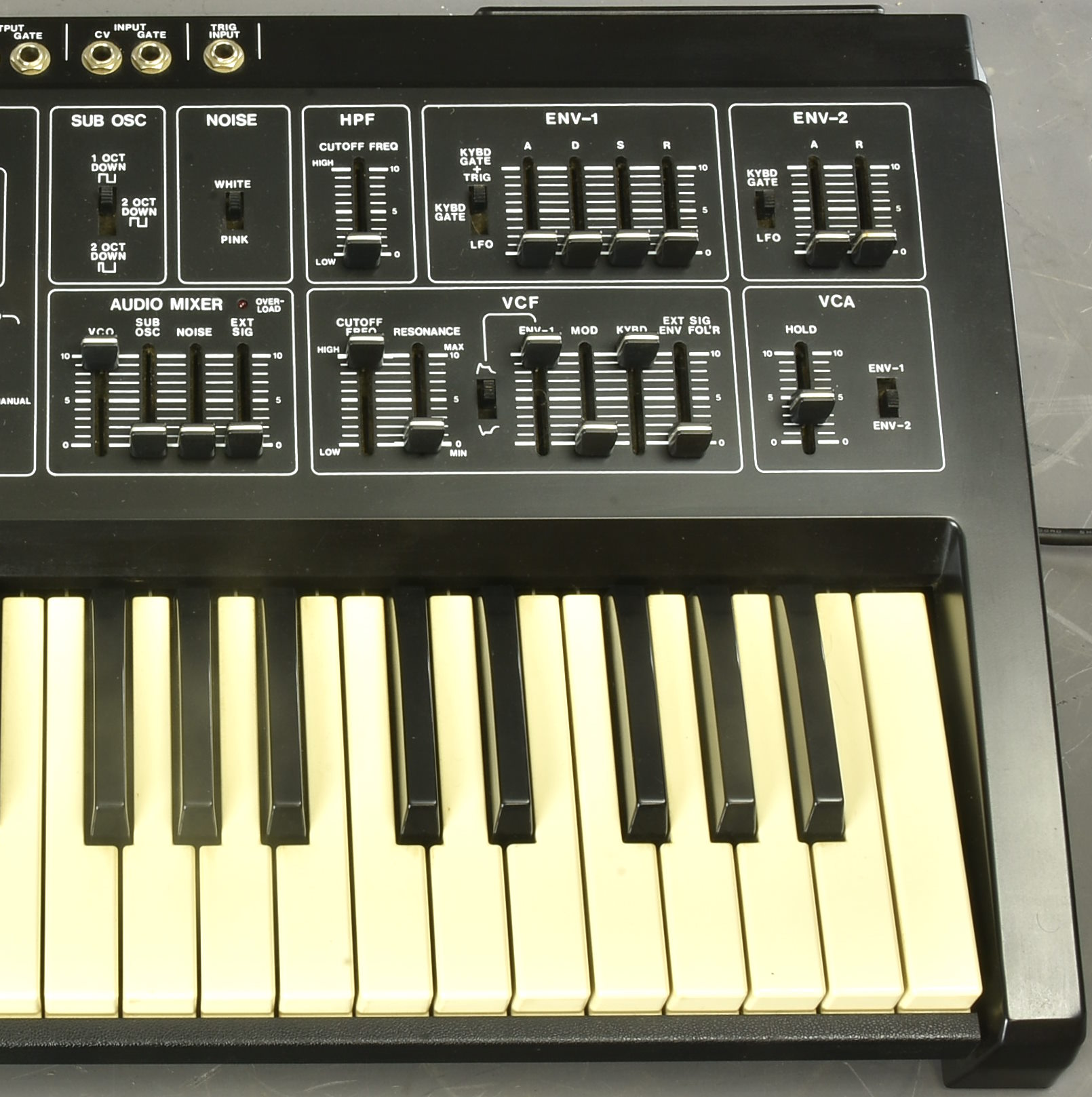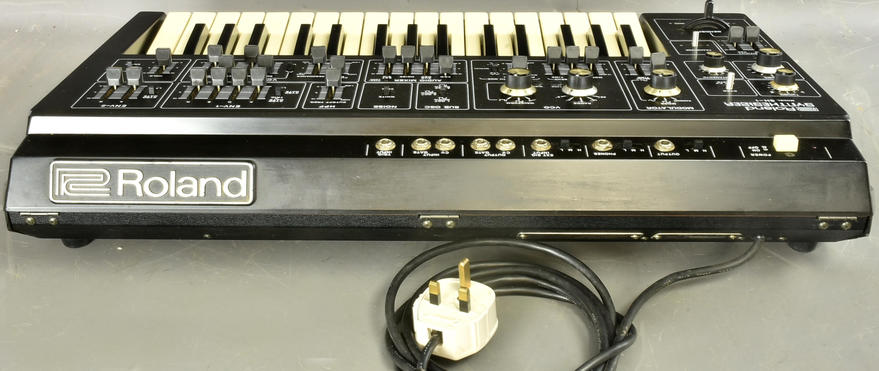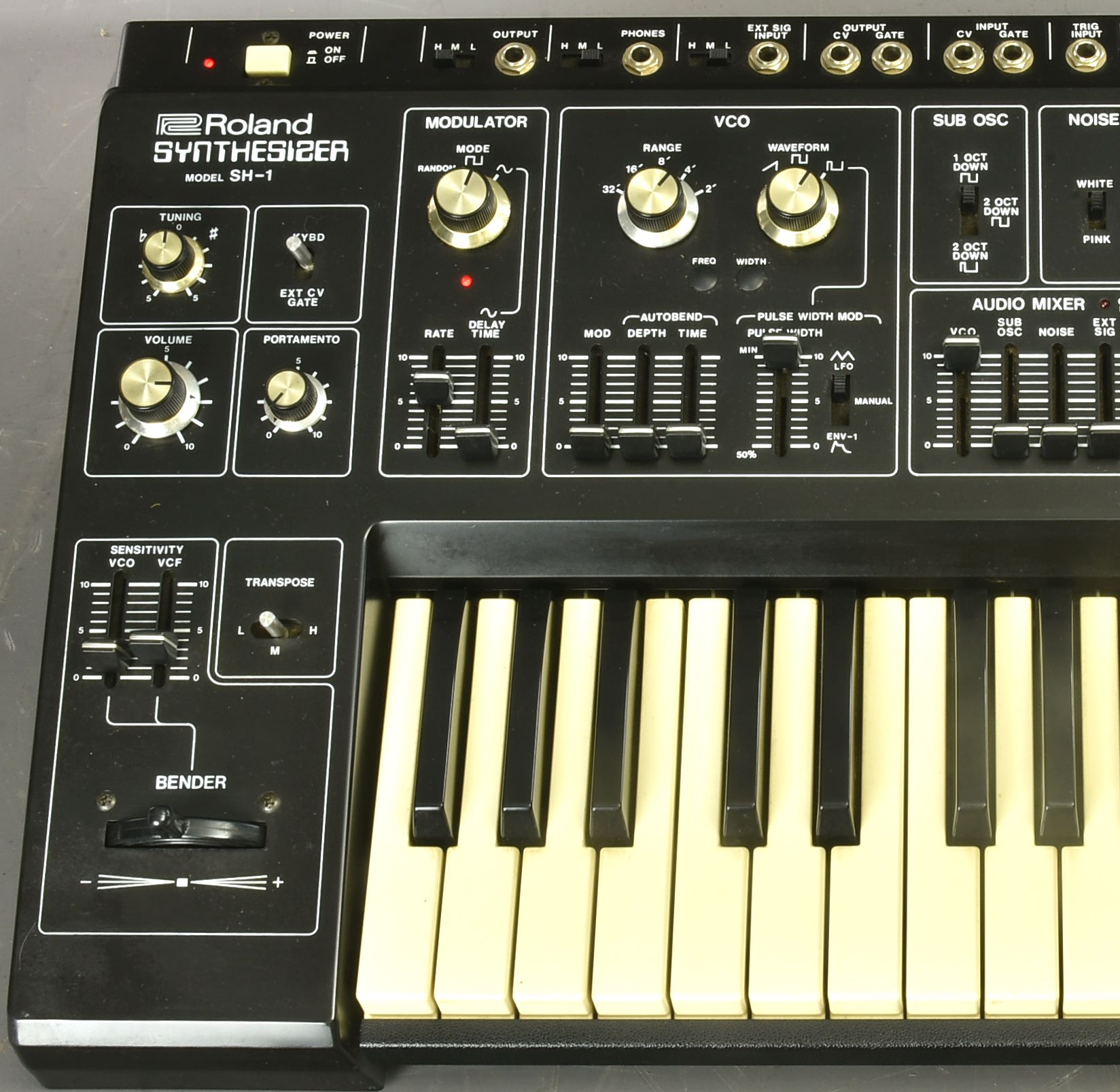 One of the earliest examples of Roland's pure class, the SH-1 was in many ways more powerful and impressive than the SH-2 that followed - and in many ways was streets ahead of its American rivals in build quality. It also, I thought, sounded more meaty than my SH-7 at the time. I still remember the owner of a London music shop going ape about the sounds he was getting out of his little SH-1 in the late 70s - at a time when they also had Moogs and ARPs at their disposal. Seriously solid, in its construction and in its sound. An especially nice feature is the audio input with an envelope follower - and this could be mixed with VCO, sub and noise in a dedicated little four-slider mixer. Plus, like its big brother, the SH-7, it has auto-bend - and the filter design uses the CA3080 OTA chip, like the System 700. This example of this seriously rare synth is in superb cosmetic condition, and we reckon near-mint. It works beautifully, though like many of its contemporaries it has some difficulty getting back to perfect pitch after using the pitchbend. [***UPDATE: we were able to find what the problem was (more the transpose switch than the pitchbend) and it's now good again. But in examining it very closely we decided that 'very good' (8/10) is better for the cosmetic description. Still a seriously lovely instrument for something only a few uears away from being 50 years old.***] Packing 12GBP. |