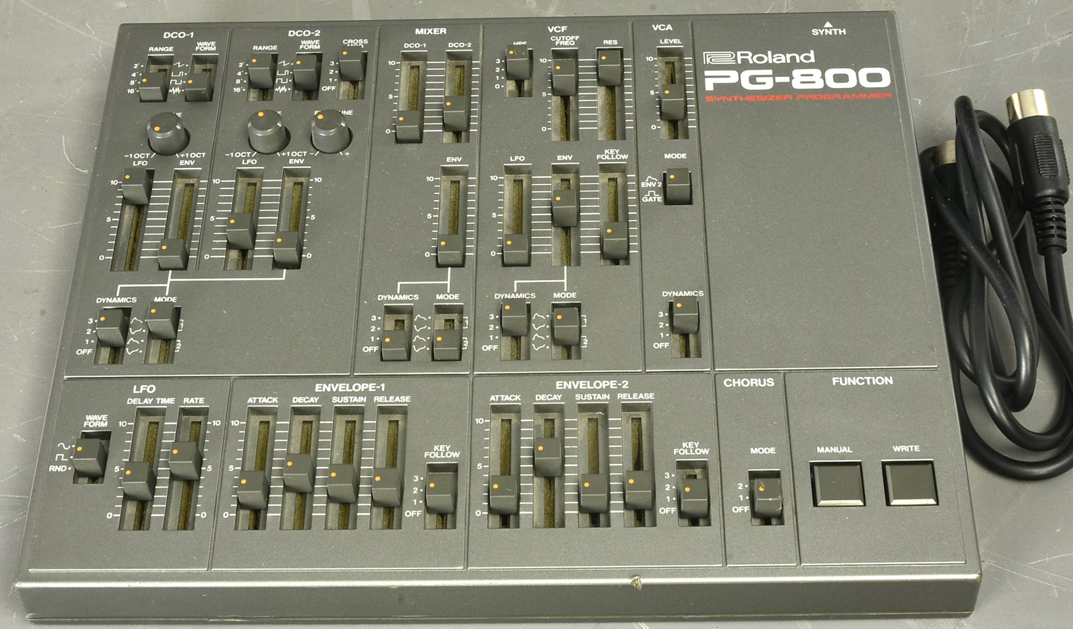 The classic Roland PG-800 Programmer for JX-10 and MKS-70. In good working order but with one or two scuffs and a tiny burn mark. Still otherwise very good condition. It comes with its pretty rare original case, and the 6-pin cable to collect to the synth. Packing 6GBP. |