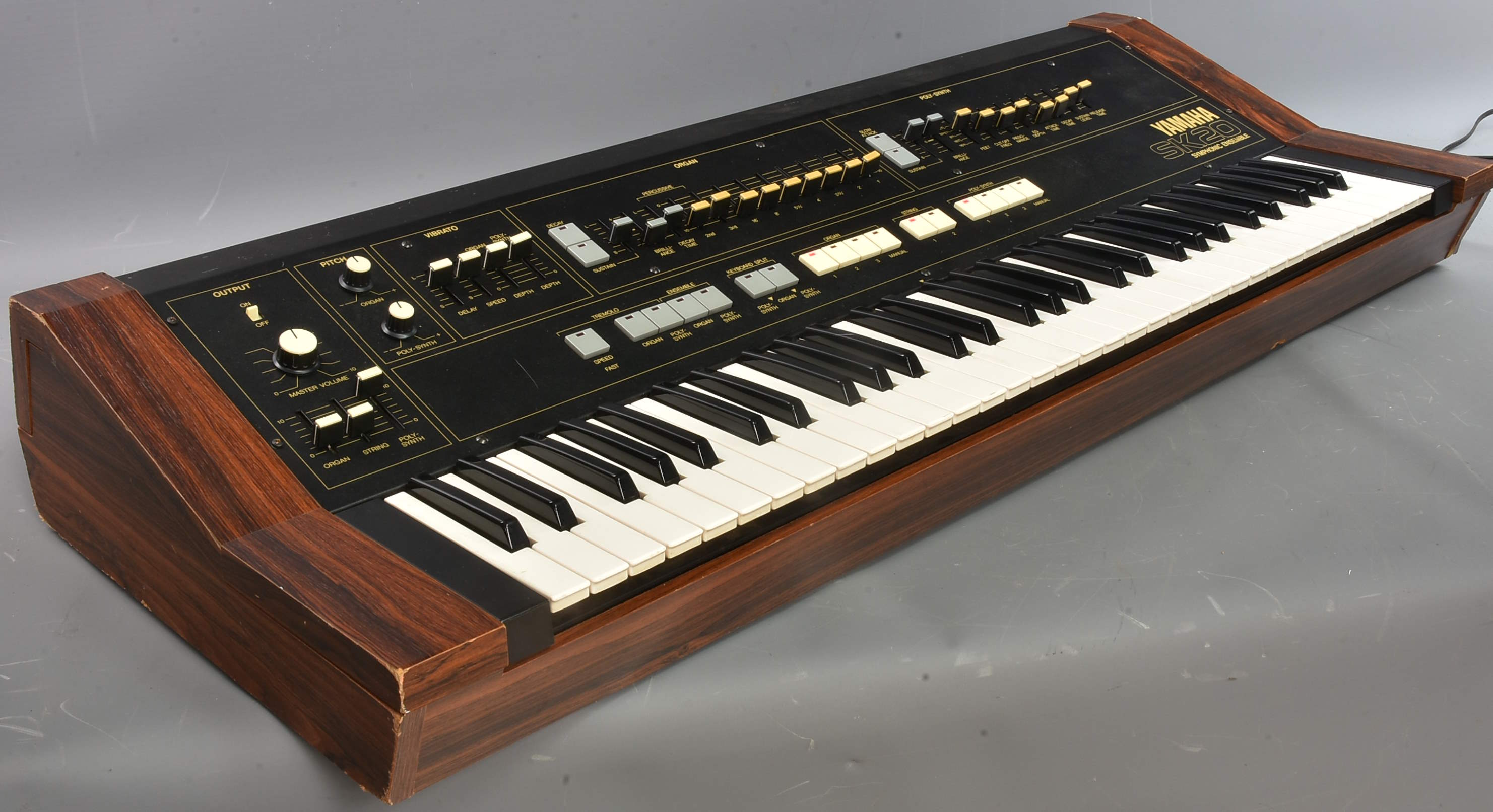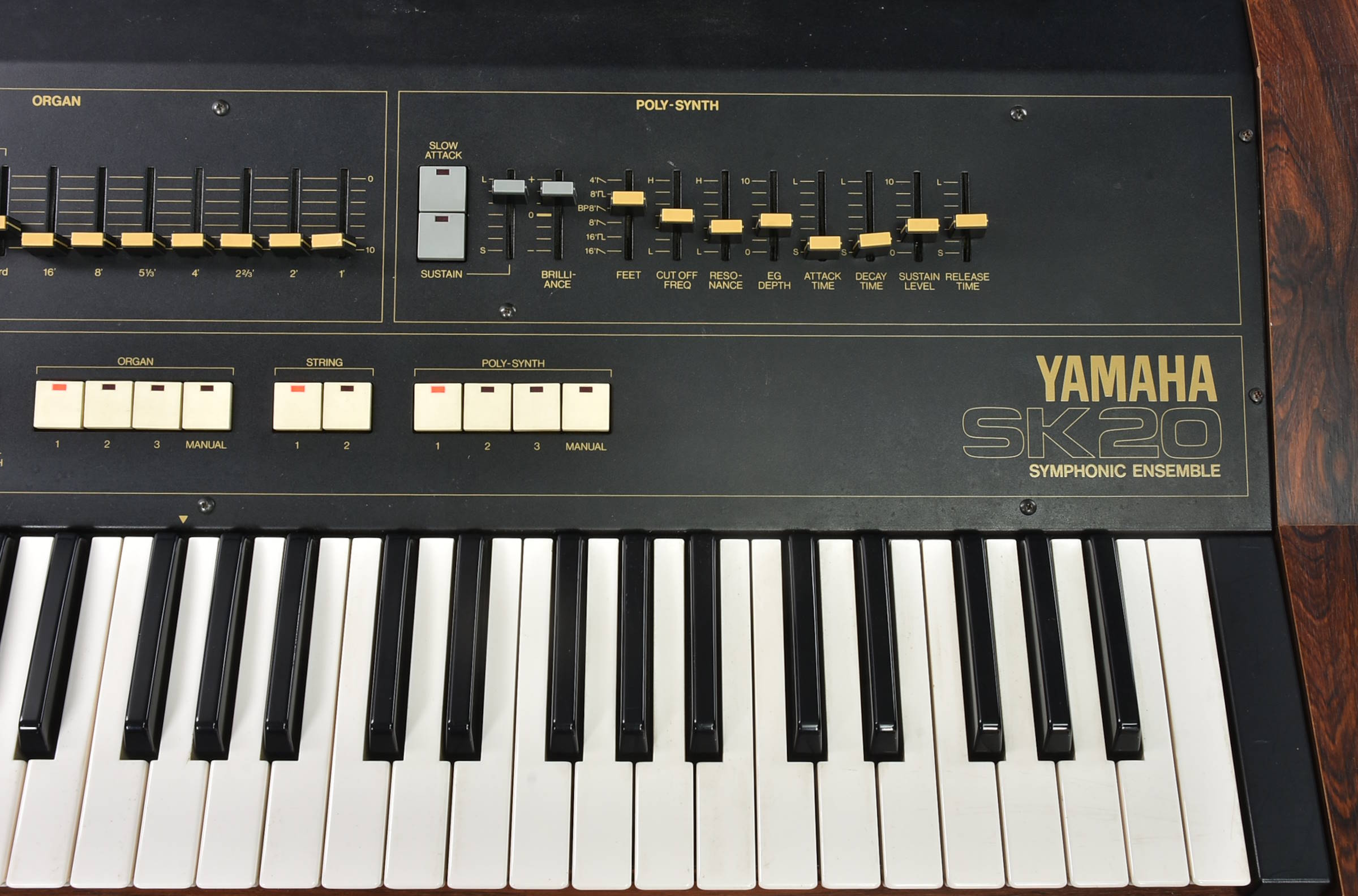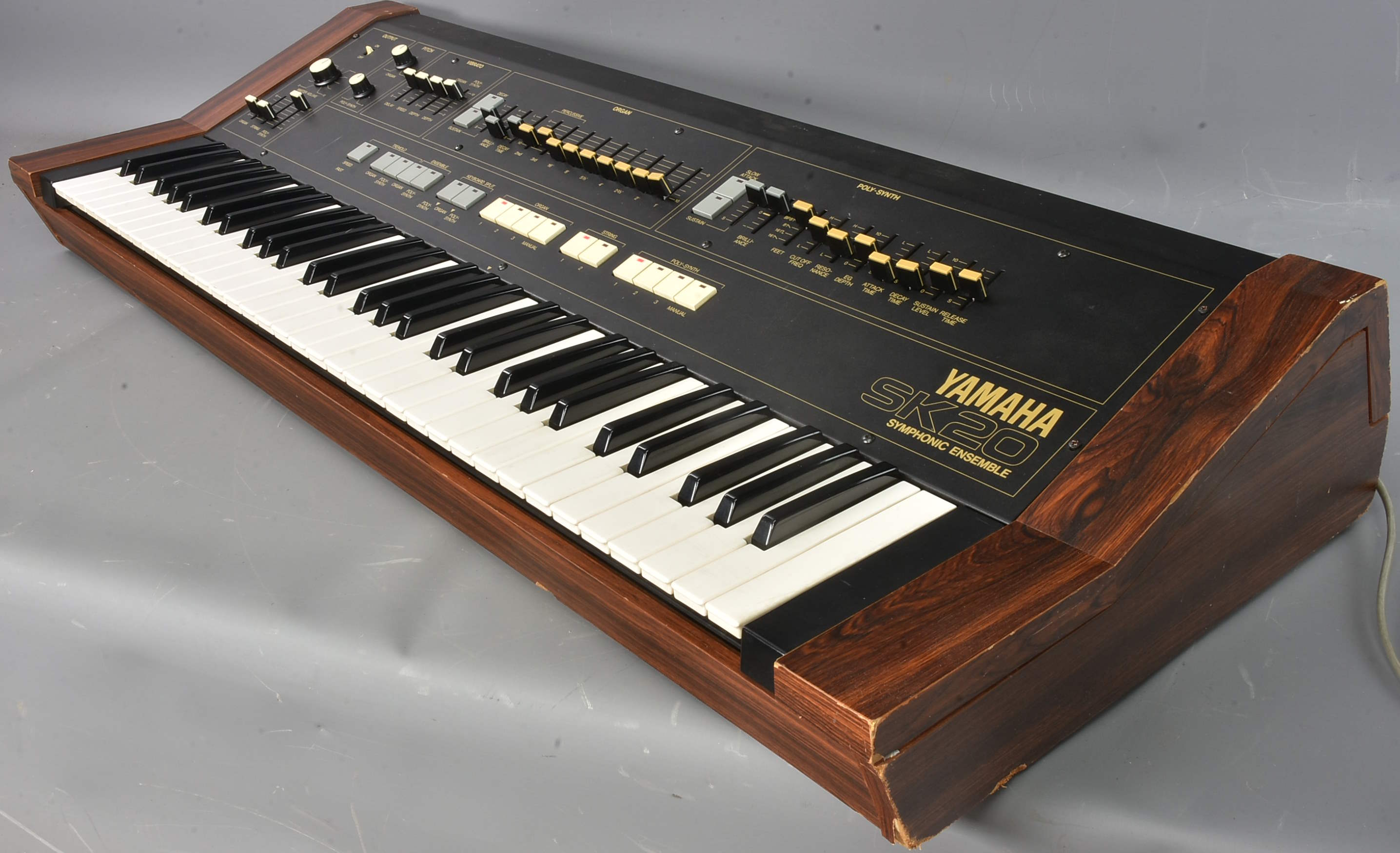 Nice condition vintage analogue 'Symphonic Ensemble' polysynth / string synth / organ with excellent control over tremolo, ensemble and vibrato. With three outputs you can send different parts to different effects. The string volume pedal is also very effective at breathing life into sounds. There is a multi-pin output for a rotary speaker - not checked. But everything else was serviced in 2024. As usual, the massive wood-veneer endcheeks are not in perfect condition, but the control surface and keys are very good. Serial number 8632, switchable voltage, currently with a UK plug. These are solid machines: packing 18GBP. |