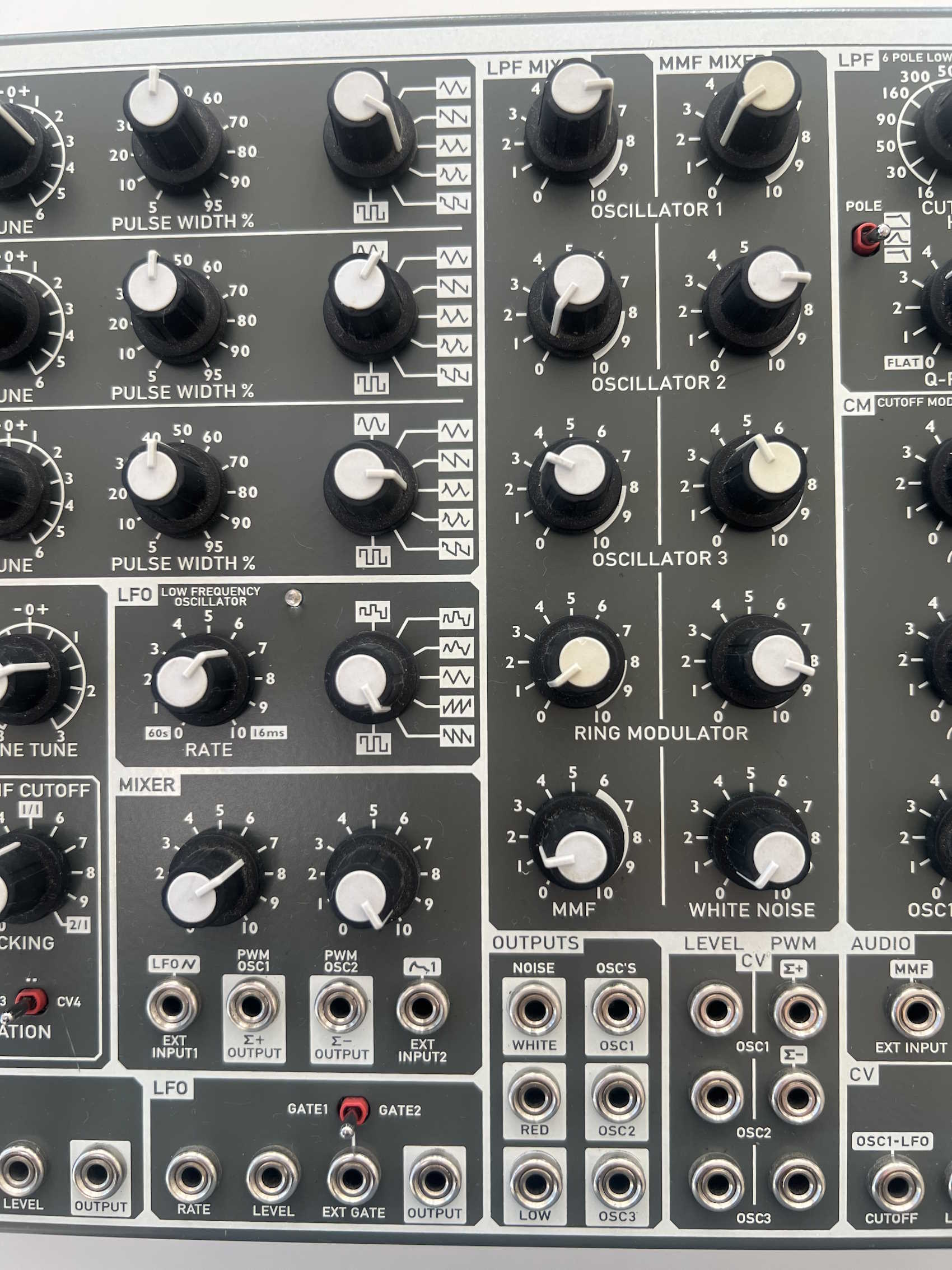 One of the classic analogue modular (OK semi-modular) synths. It's actually not perfect condition on cosmetics, as you can see in the photos. There are some scratches on the sides and back - though the important bit (the front panel) is in very good condition indeed. But the sound is excellent as expected, beefy and powerful, and really such a good semi-modular with complete Eurorack and MIDI compatibility. Switchable voltage - supply your own IEC lead for price, ease and safety of shipping. |