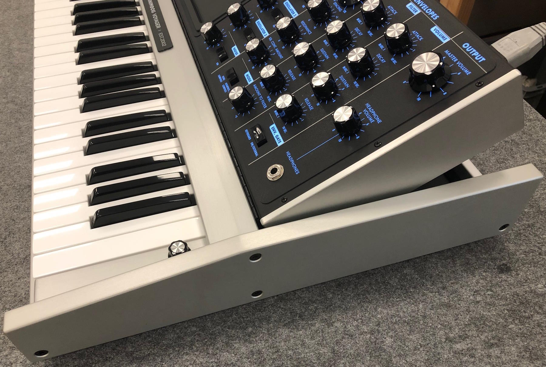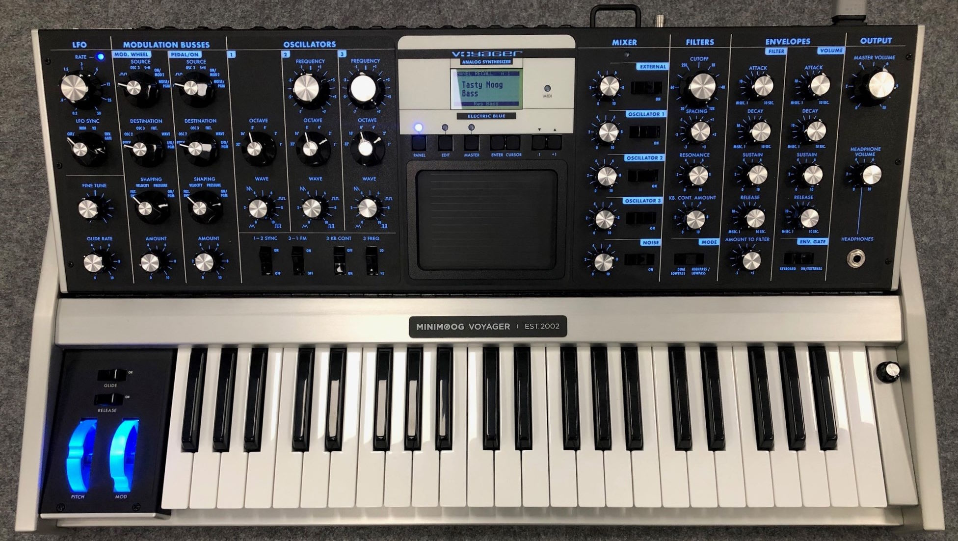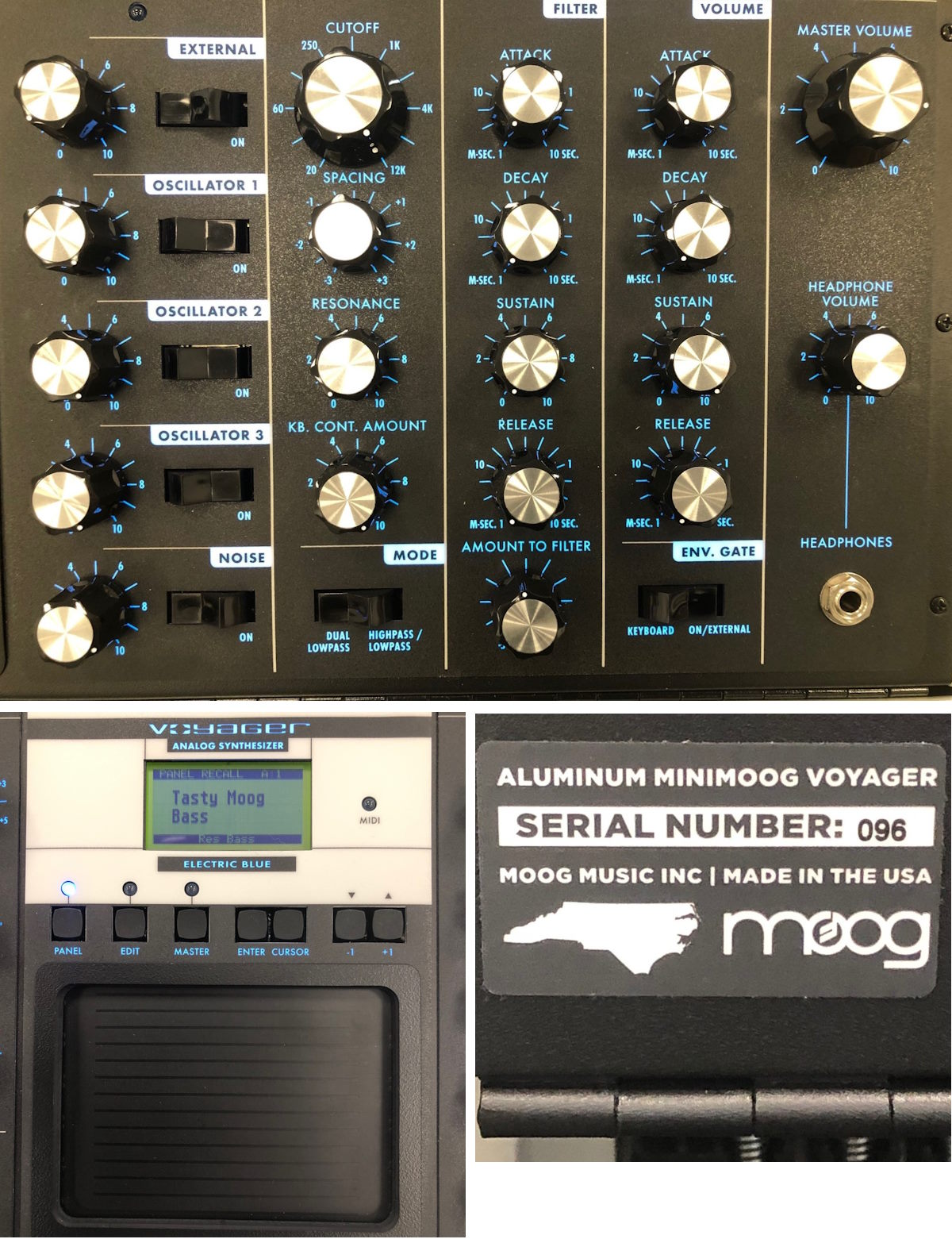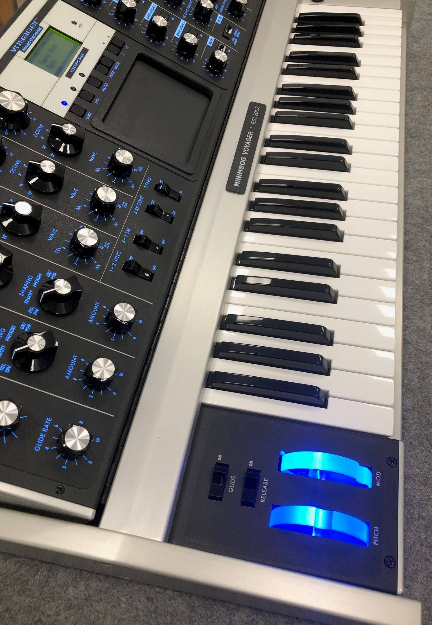 Brand new, never used limited edition Minimoog Voyager Blue in aluminum case including Lintronics slew rate update. Only 100 units were produced, and this is #096. With its original manual and all packing materials.