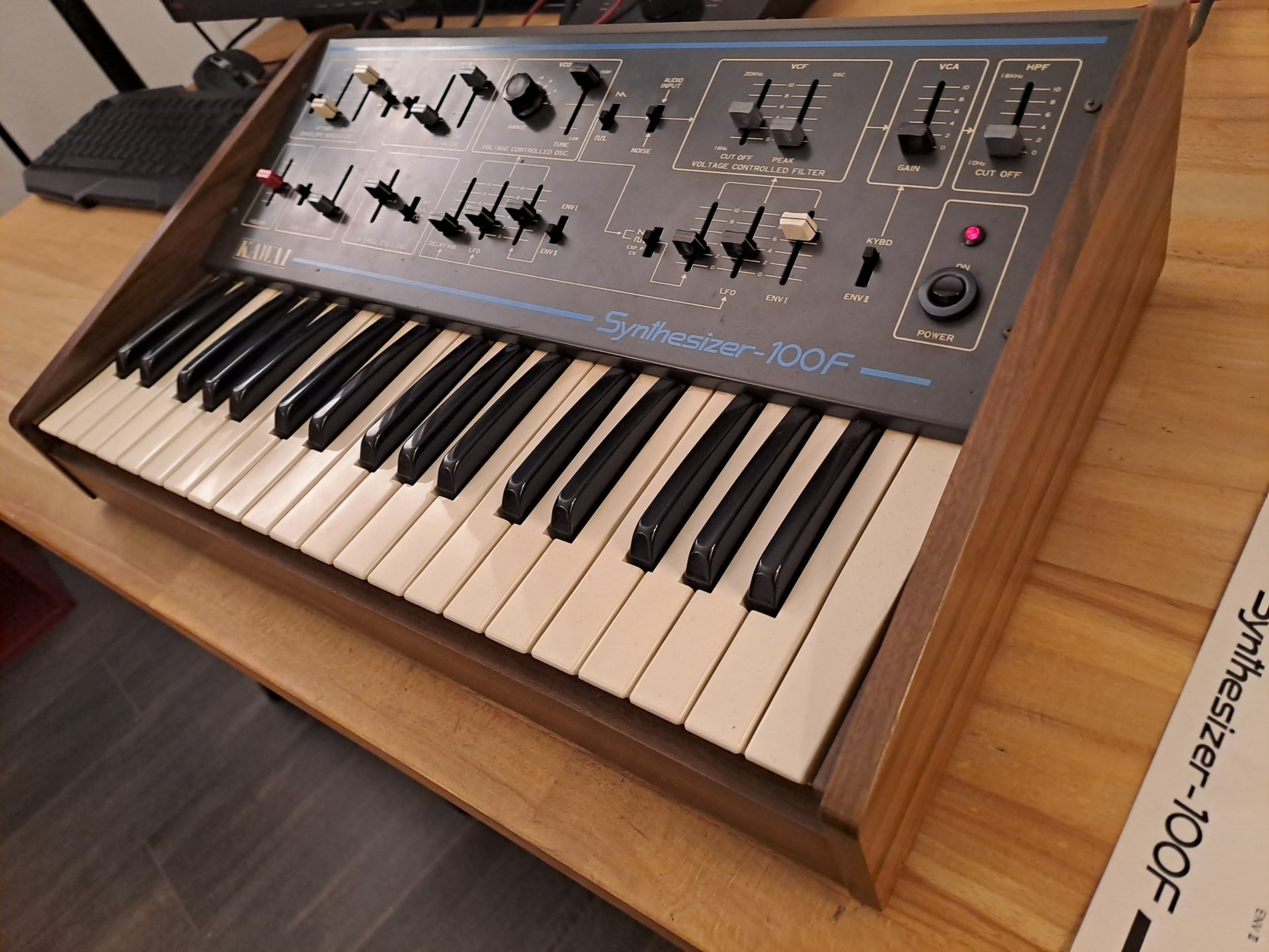 KAWAI 100F vintage analog powerful synthesizer, little monster just serviced and in very clean conditions with CV/Gate mod by kenton project 1v/Oct, it sound amazing! There are included 3x original rare patch charts (two blanks and one preset) in great conditions too