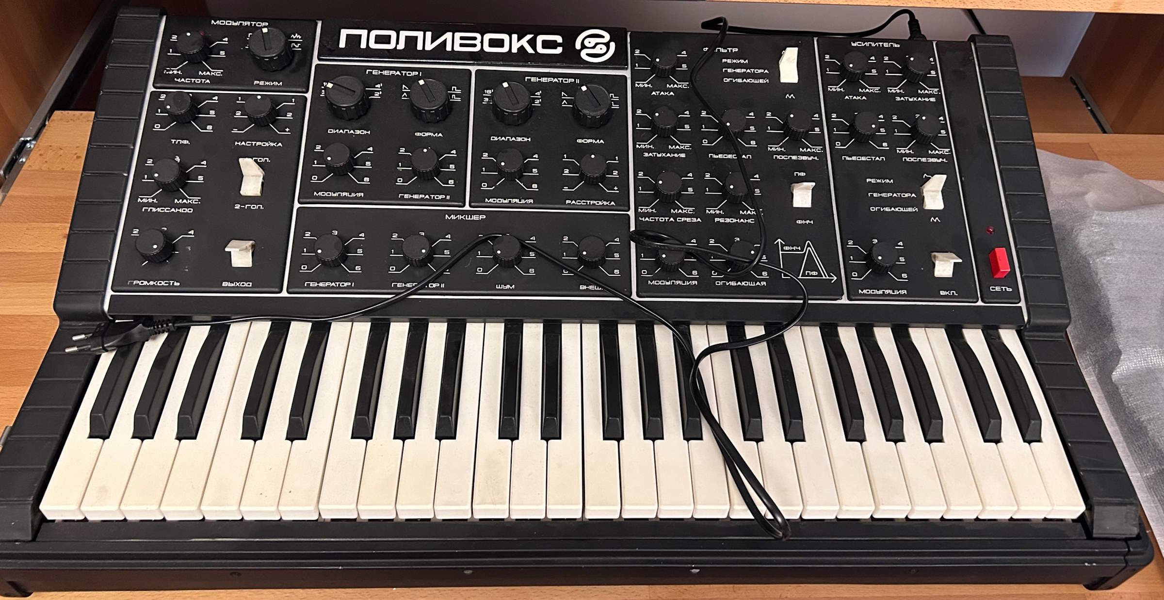 In very nice condition. You will struggle to find a nicer looking one. Everything working as far as I can tell. But it is a Russian Synth! They are revered for their sound and not necessarily for their build quality. Having said that, this is the best of all the Russian synths I have owned and the last one I have kept. ***I can confirm the Polyvoks has fully functioning midi. There is a midi input on the back and in order for the keyboard to be controlled by midi messages there is a switch on the left side of the Polyvoks which switches the unit from its own keyboard to midi. The media interface also transfers velocity values for the VCA.***