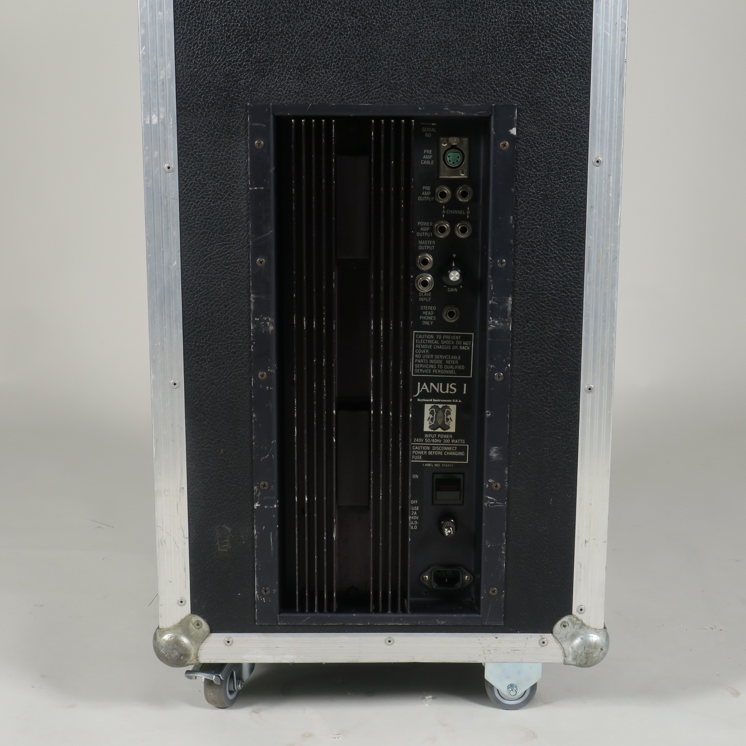 Selling this Rhodes Janus 1 speaker cabinet with a 100 Watt RMS stereo power amplifier (50W per channel). It's the perfect match with a Rhodes Suitcase preamp with 5-pin connector. When you connect it with the Suitcase it provides stereo vibrato in a single enclosure. It’s possible to modify the 5-pin input to a standard XLR if you want.