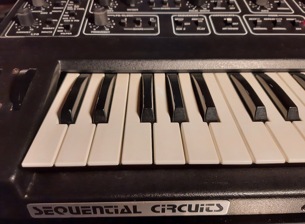 Original Sequential Circuits Pro-One synthesizer in very good condition. Only one owner since new, the Norwegian synth band Fra Lippo Lippi. The synth is considered by many as one of the best mono synths ever. It is in original form, only the power had has an upgrade (new caps), and it has been cleaned inside and outside, fully calibrated and ready for use. All knobs are original, and all functions work as they should. One slider knob has ever so slightly contacts problems, but it has been cleaned and re-lubricated, so it works fine, but care might be needed. Or it could be changed to a new one. We choose not to do that to keep the complete synth original. The keyboard is original too, and might need new bushings if you are a keyboard player. All interfaces work, and of course it sounds brilliantly! |