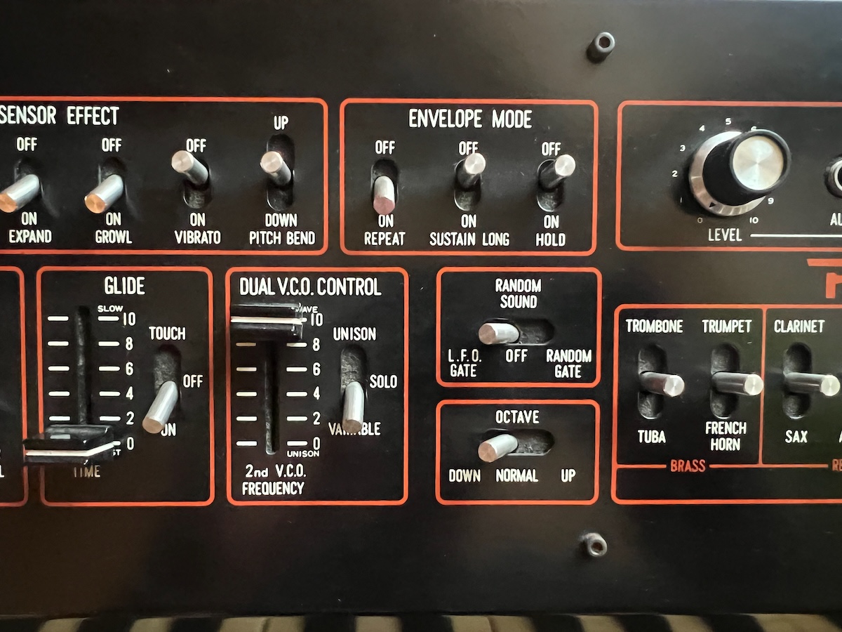 Rare dual VCO synthesizer. Rebadged MX-2000. Nice filter and ring modulator. Some of the preset switches are little noisy, but nothing serious.