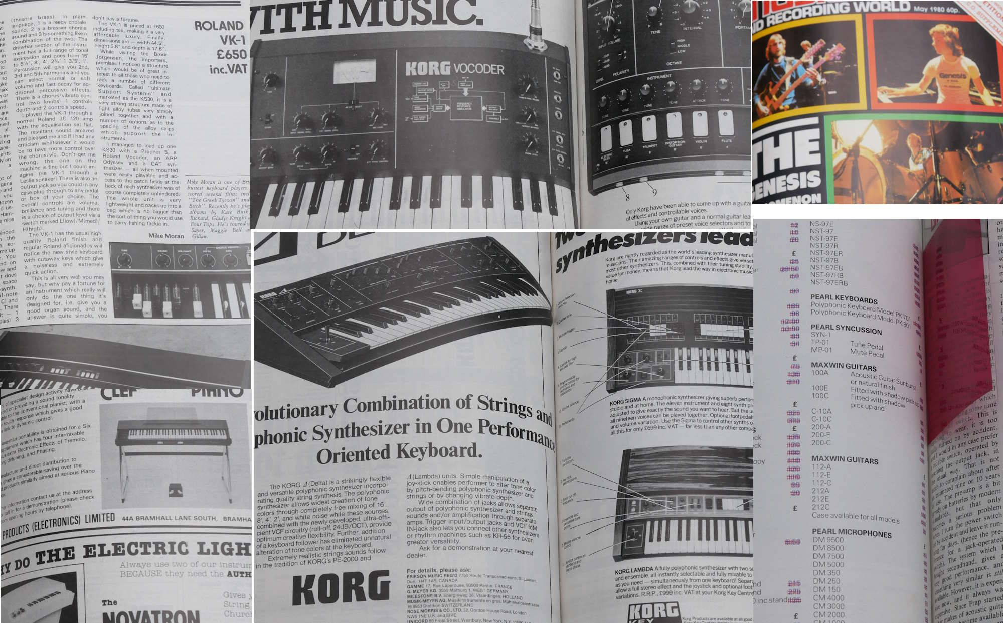 This is a set of International Musician and Recording World magazines in an original optional (and expensive) binder. They are in very good condition, with virtually no notes, or coupons cut out. There is some 'slump' to the pages where they have sat upright in their binder, and probably some dust on top. IM&RW was one of the first magazines produced for the musician and recording studio person. There is a broad range of material covering guitars, amps, keyboards, mics, effects, recording gear, etc.. They were used for research on various books and articles. Please see the photos for an idea of what is included. I've concentrated on synth- and FX-related items in thumbing through taking photos, but there is a lot else of interest. This set of magazines runs from December 1979 to September 1980 inclusive. As the mags increased in size, they had to increase the size of the binders, too.