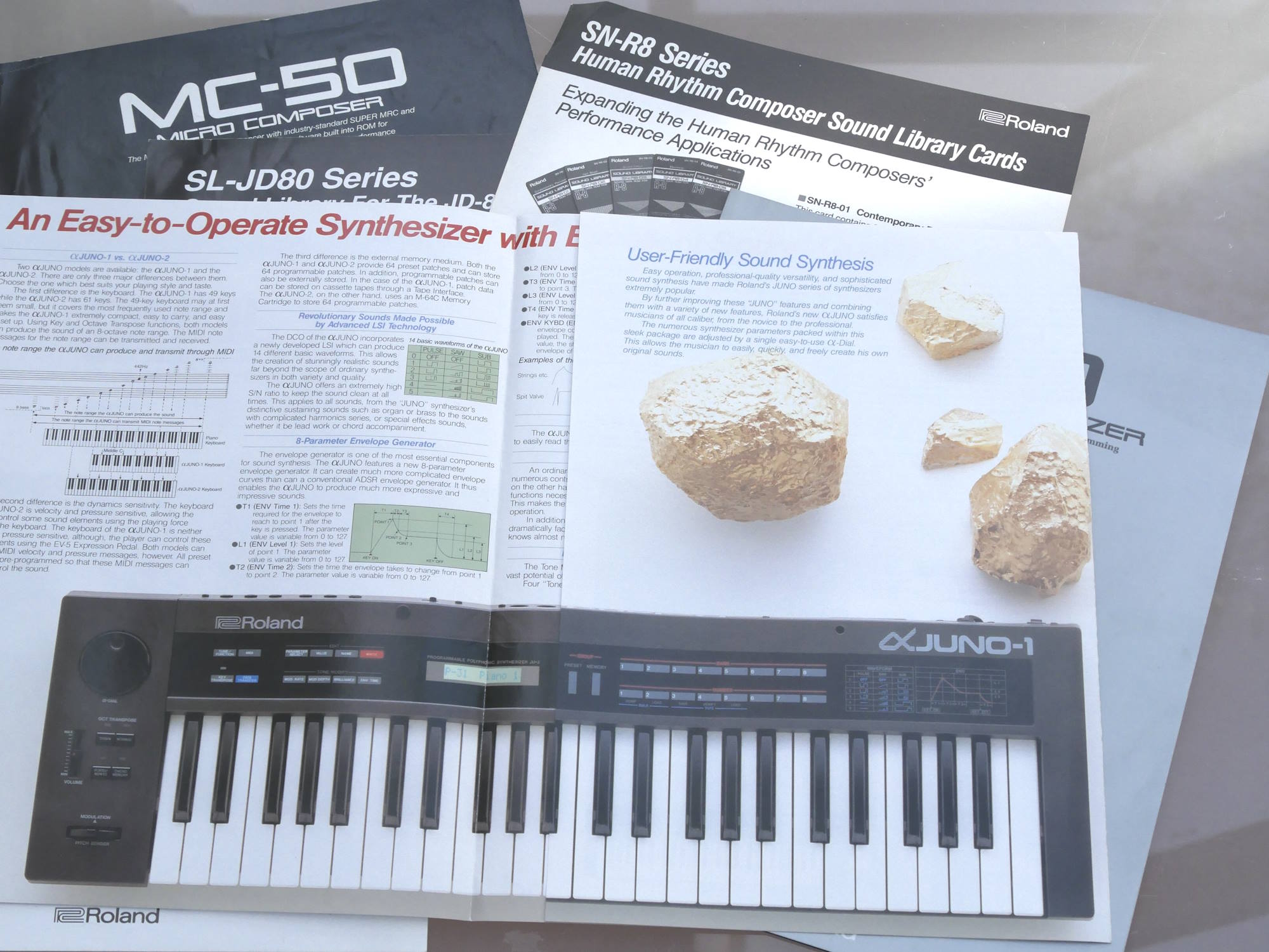 Beautiful leaflet for the Alpha-Junos, along with other contemporary literature - including a good page about the the seminal MPU-101, the early master of MIDI-CV conversion. |