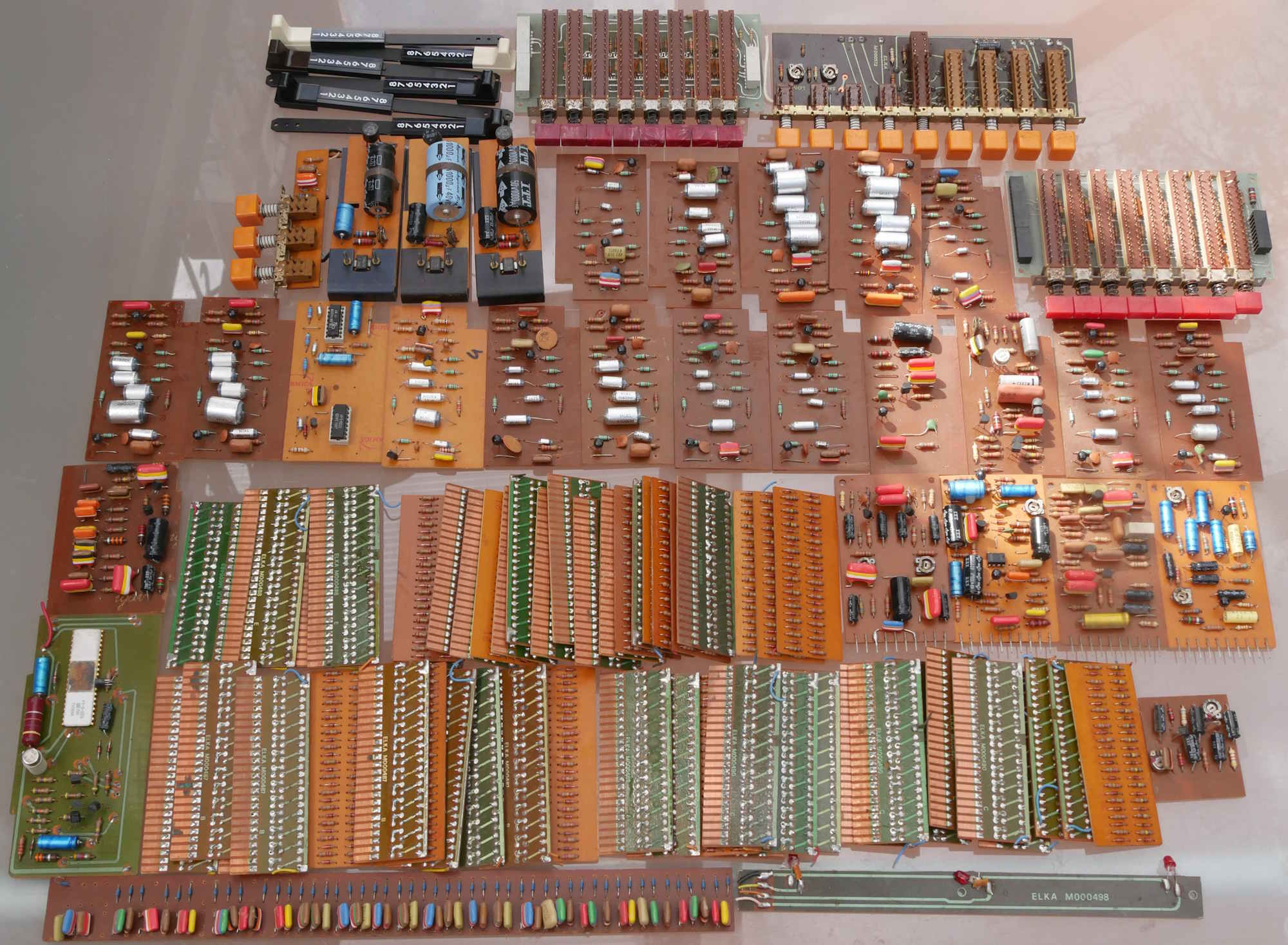 A huge lot of vintage circuit boards etc from Elka - believed to be parts for the classic X-705 space-age organ. Sold as seen, untested. Packing 6GBP. |
