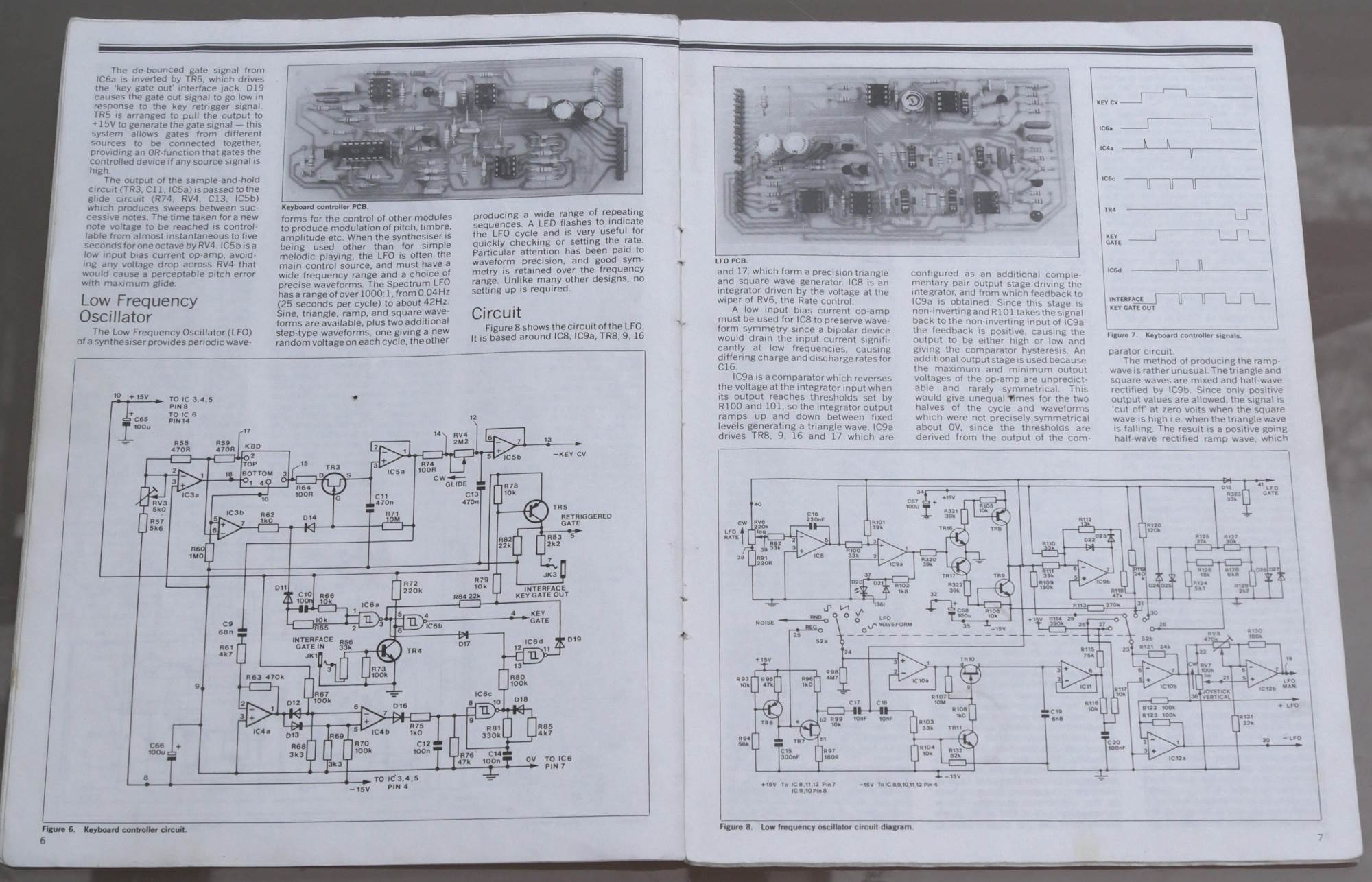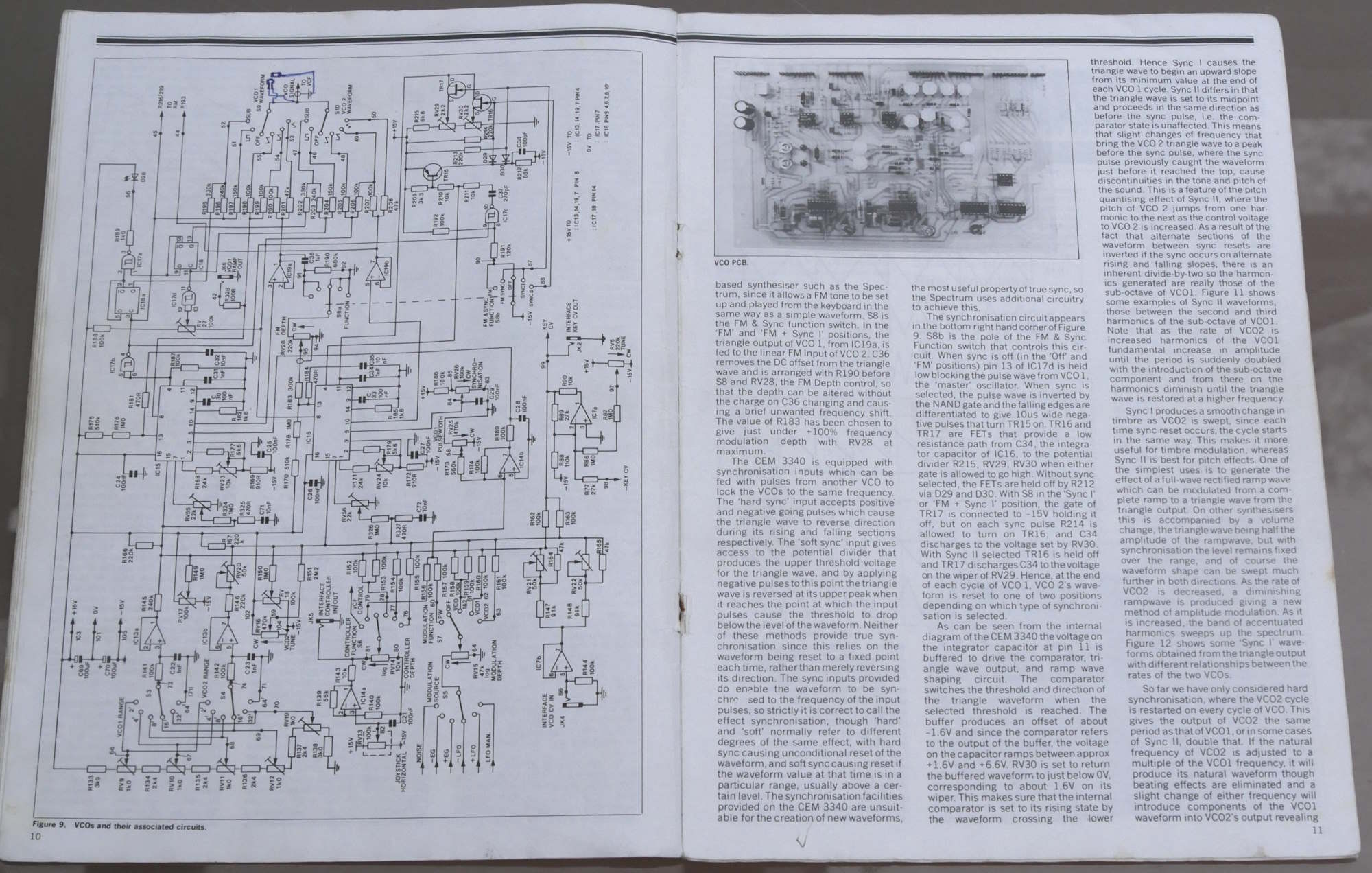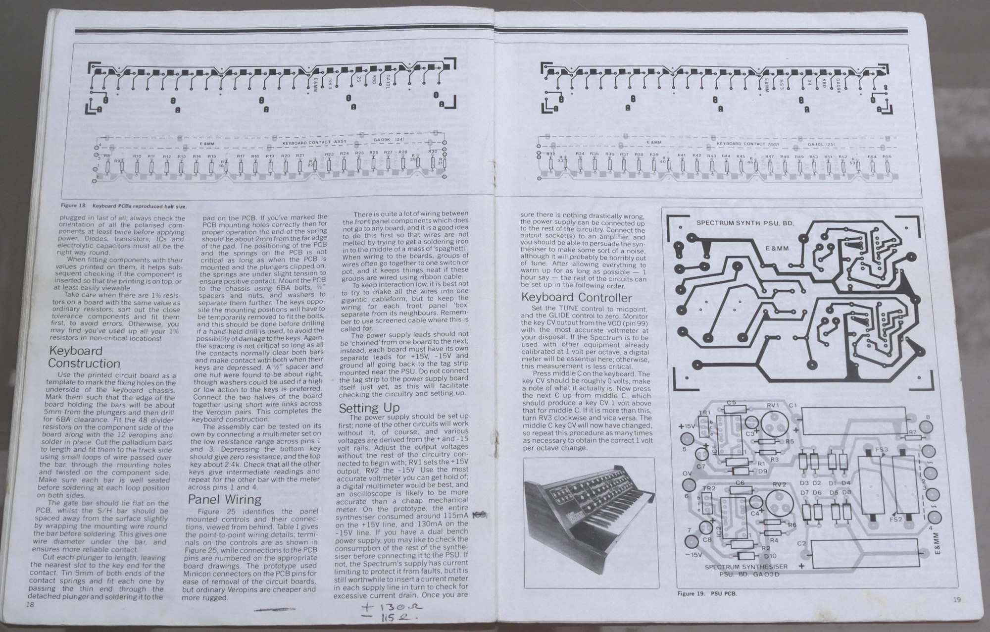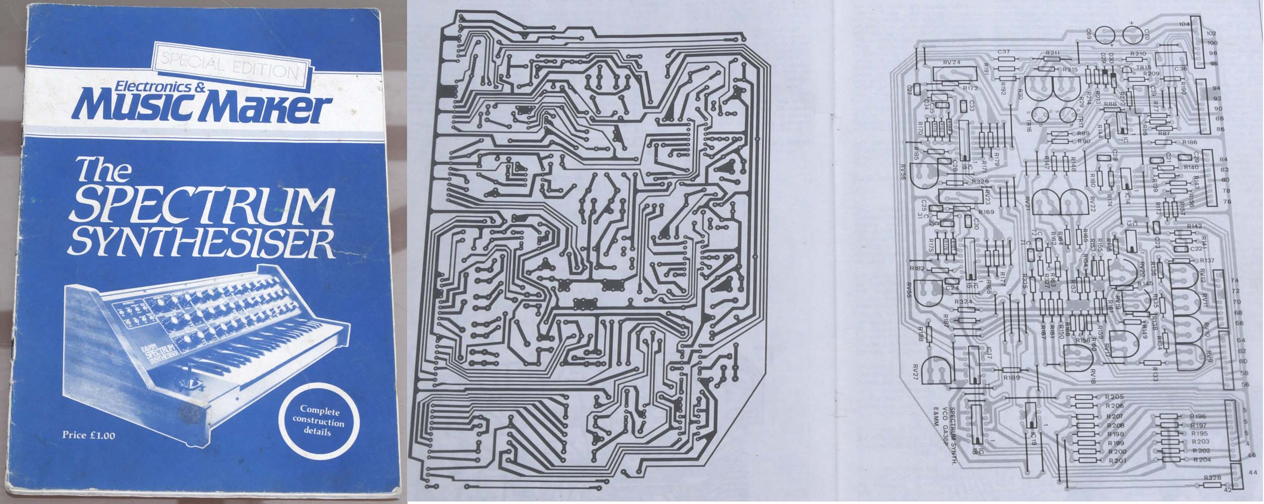 The original construction manual for the Electronics and Music Maker Spectrum synth from 1981. This is generally complete and in good condition, except that the parts list has been heavily annotated. Luckily, the owner used coloured pens, so everything is still legible. |