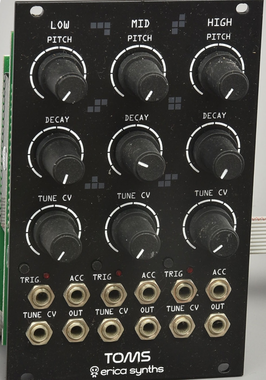 Description Erica Synths' excellent and powerful Toms module, with three toms in one module - and voltage control available for each. With ribbon cable, no screws.