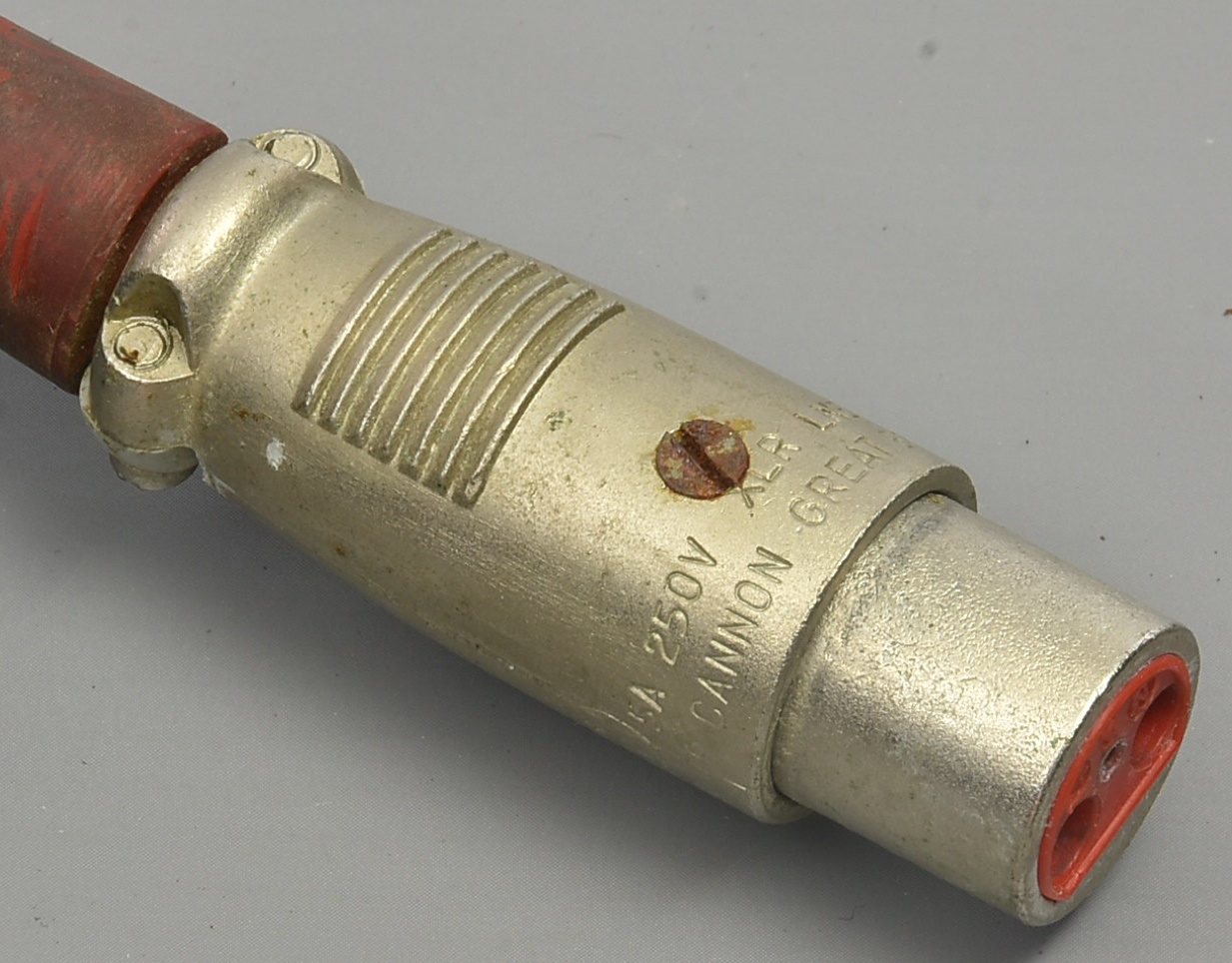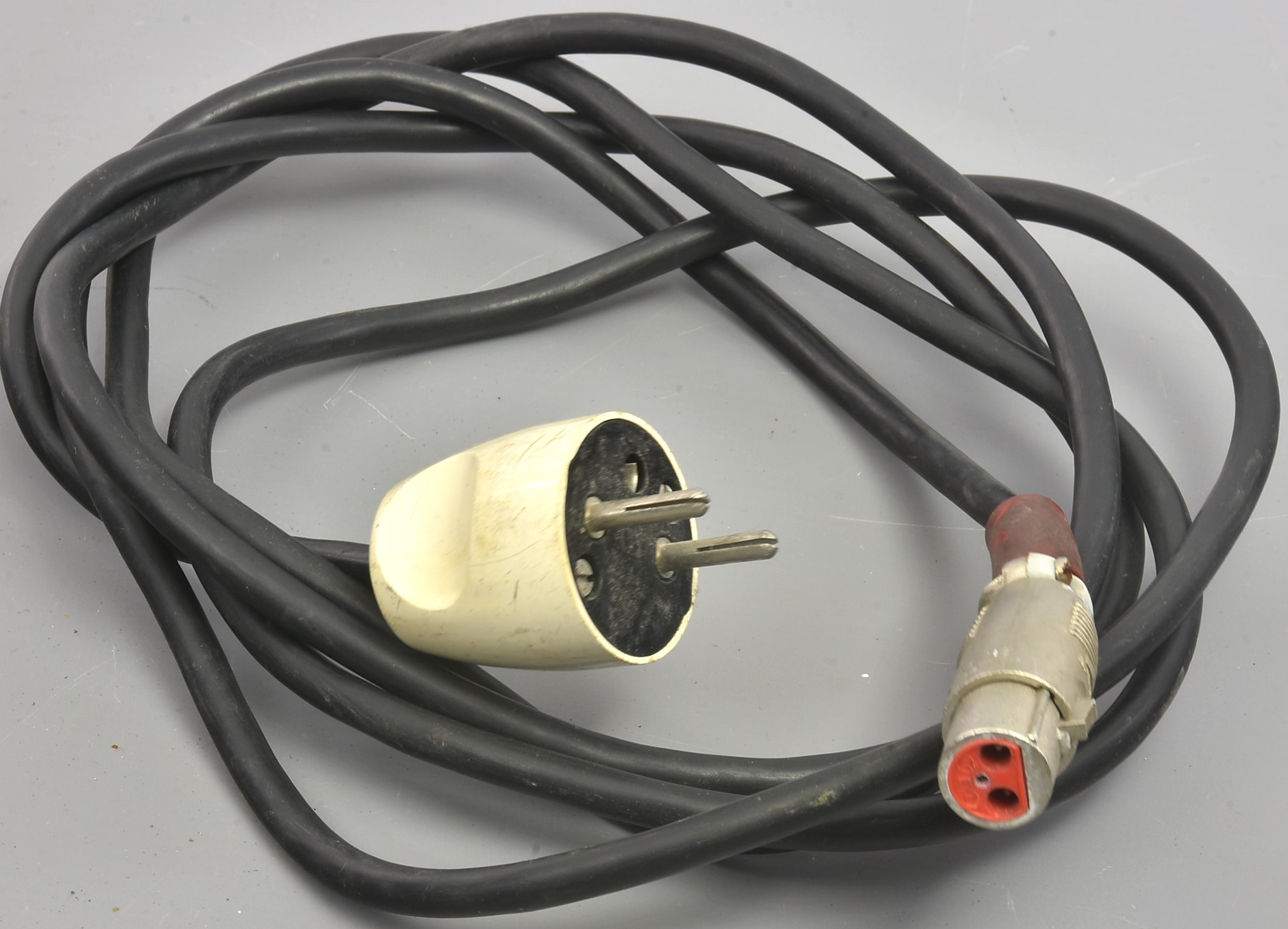 A vintage Cannon mains lead, with an equally vintage European plug on the end of it. Used in old Hammond amps, and possibly even early Fairlights. Unlikely to meet current safety standards. No packing charge. |