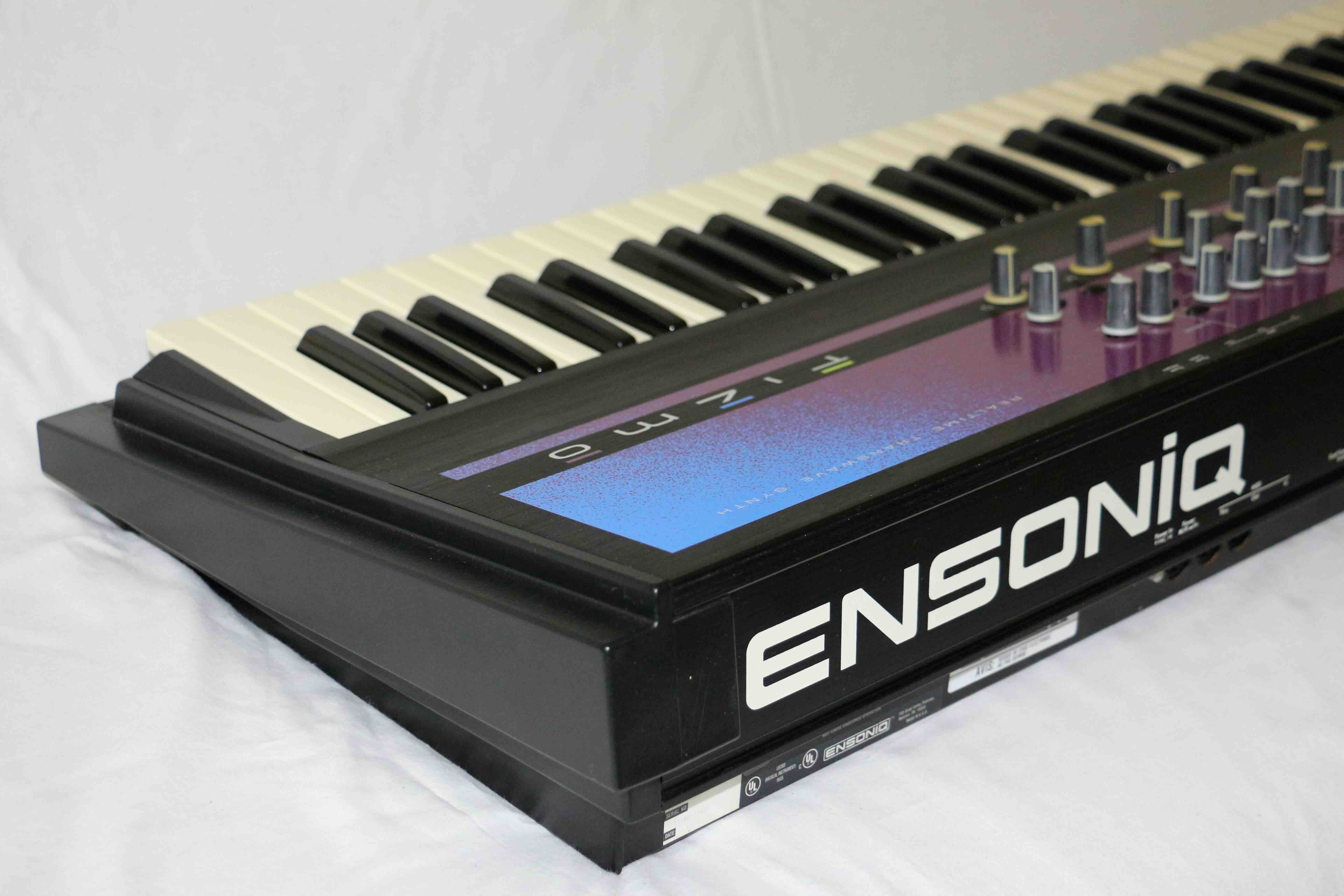 Ensoniq's swansong, the FIZMO is an incredibly rare and highly sought-after 48-voice synthesizer which uses 2nd-generation Transwave technology to create very organic sounds unlike any other synth available. The top panel is festooned with realtime controls for many of its features, including the unique and quirky 'F I Z M O' knobs which alter various parameters per patch. It is most revered for its ability to create immense textures and soundscapes, often from just a single note.