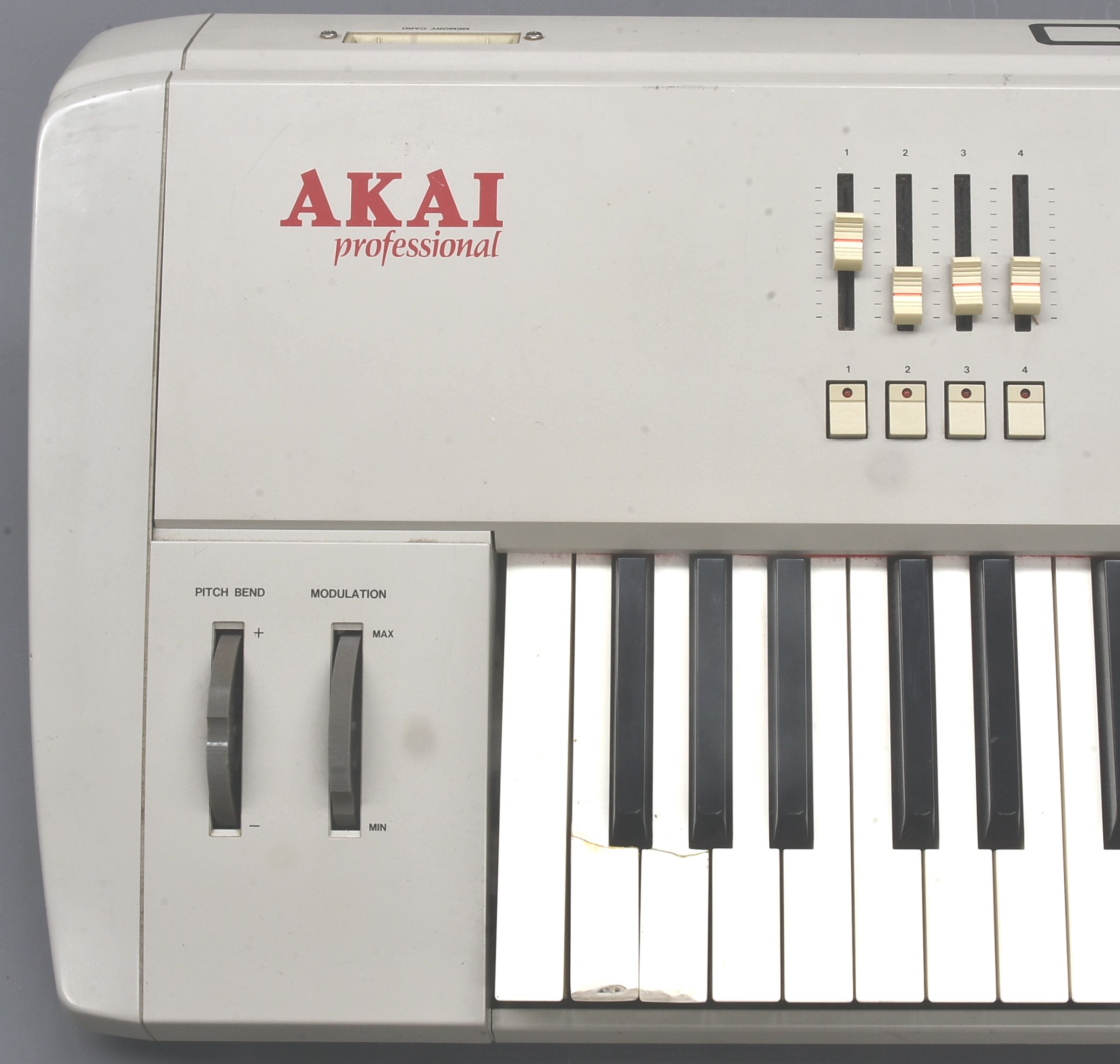One of very many items from Calum Hunter's superb home studio. This rare master keyboard from Akai has a couple of damaged / re-glued keys down at the bass end but is otherwise good, with a very bright display. Very well reviewed by Julian Colbeck in 1992. This doesn't have the optional piano board. Please supply your own (UK / Euro) IEC mains lead - this is hard enough to pack already (24GBP). |