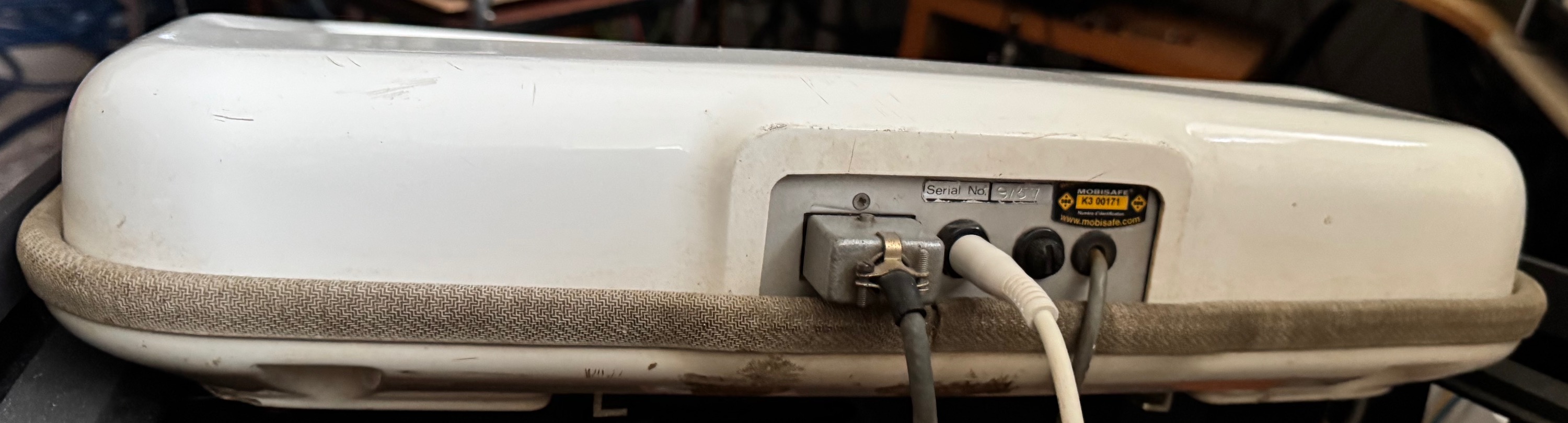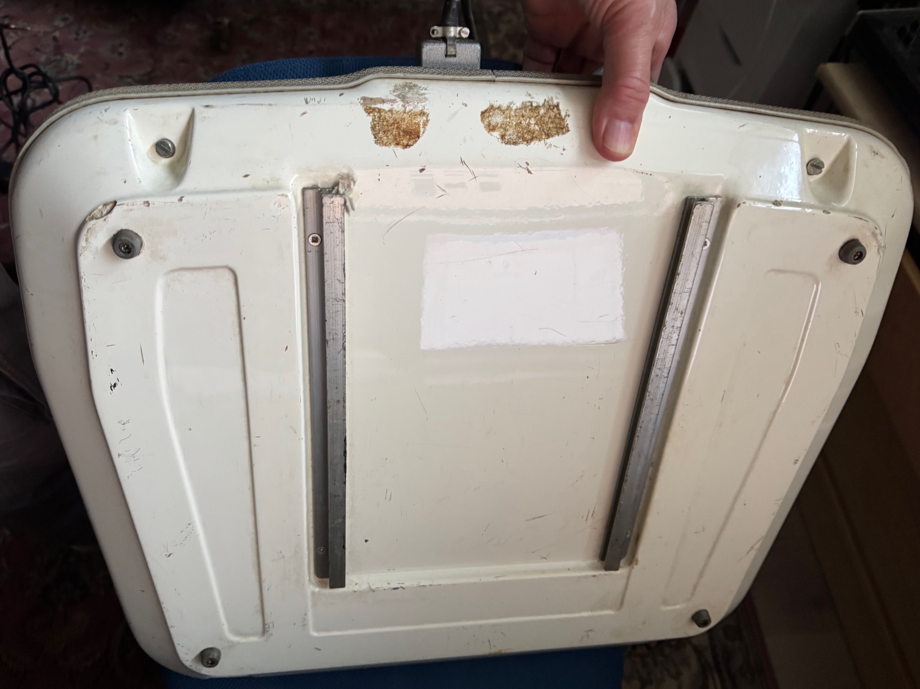 Good condition with normal wear on white plastic chassis. Complete, only missing stand. The plastic enclosure is discolored and has traces of stickers.