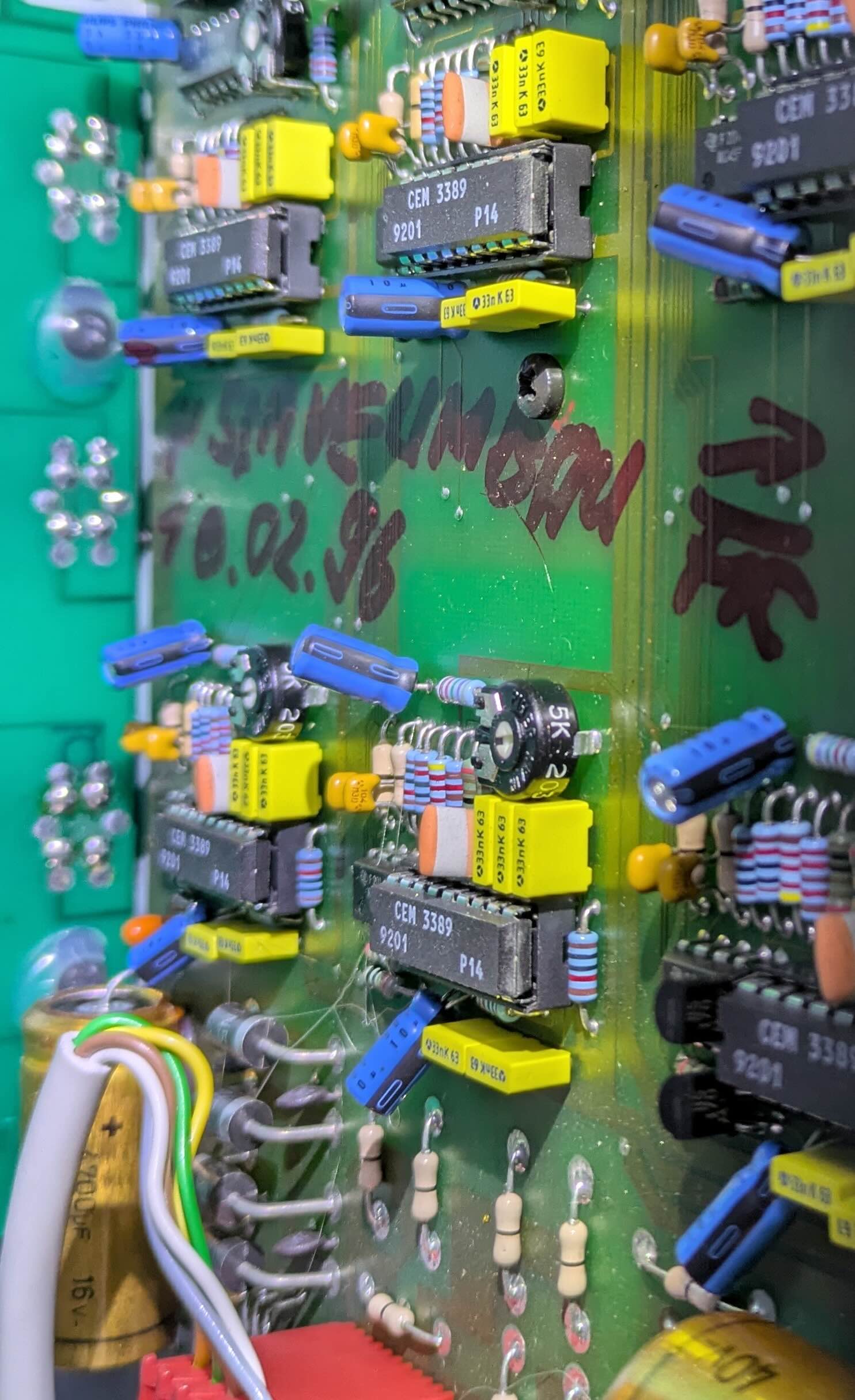 From what I can gather this is a mid-production model, with Rev A CEM3389 filters (see pic) but then a Rev B front panel and 24-click encoder. The buttons can be stiff if you haven't pressed them for a long time, but it only takes one press to loosen them up again. 2 manuals included, one for the software revision. It has a Euro plug.