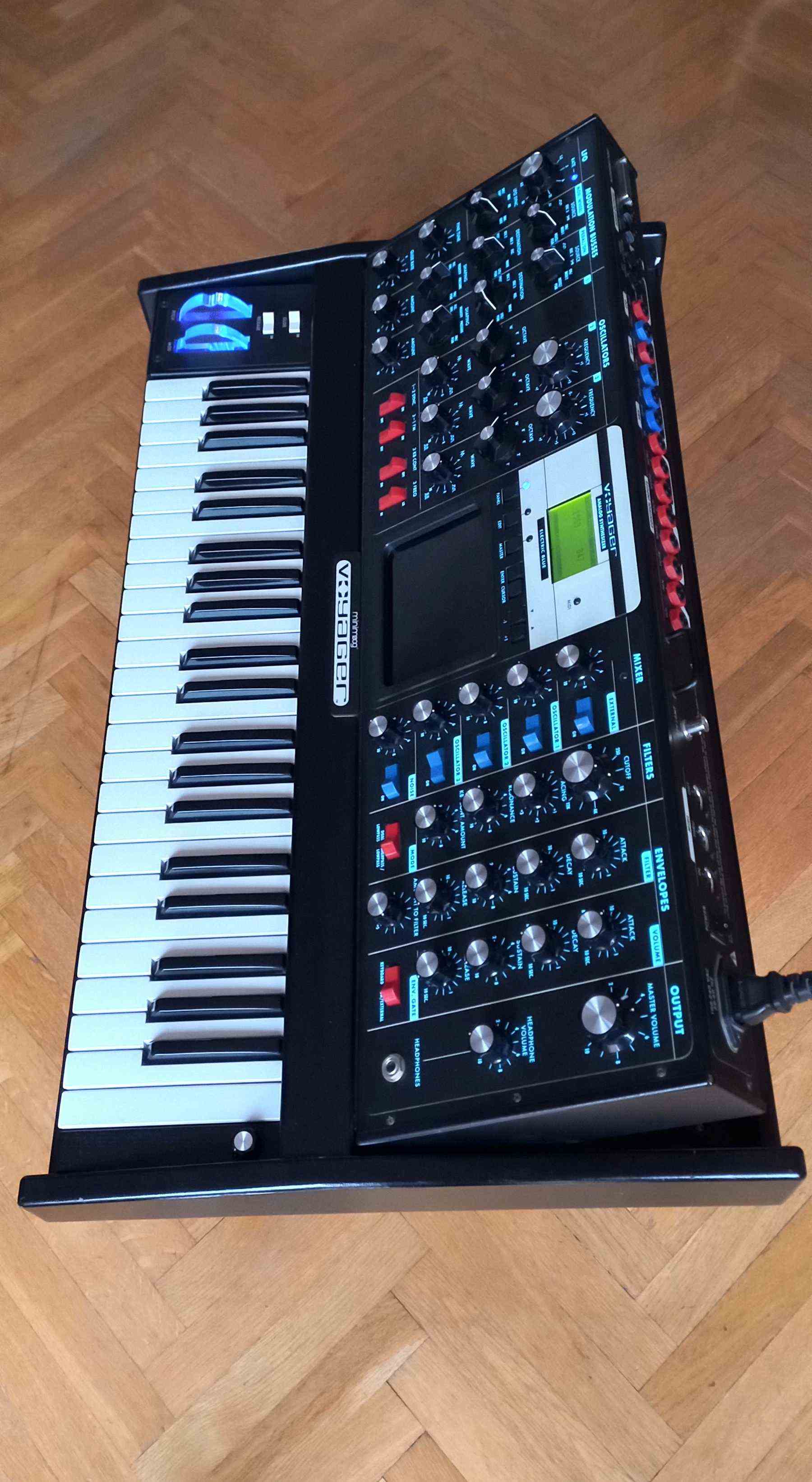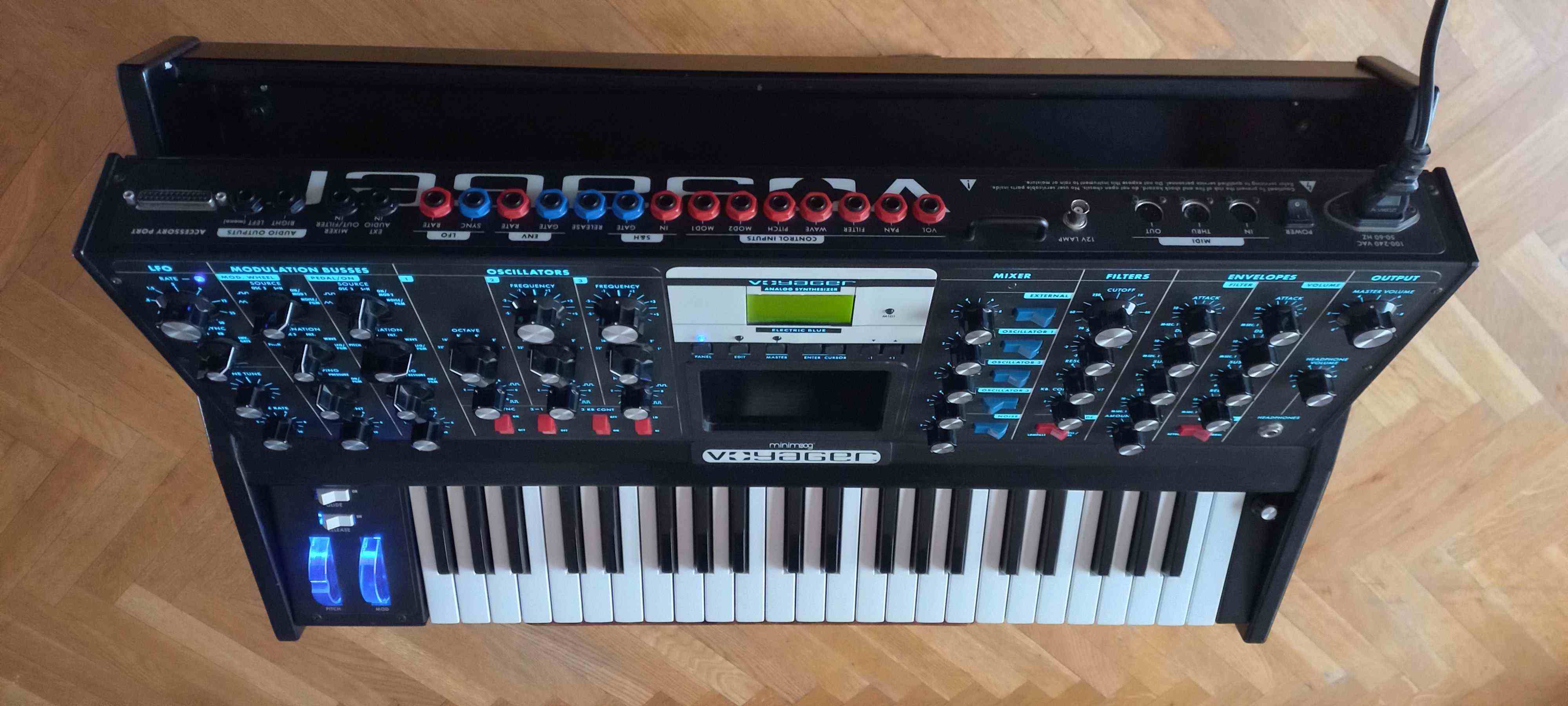 A true classic counting with Bob Moog himself on its design team, this enhanced Electric Blue Edition minimoog Voyager unit received the V.3 digital board upgrade by moog techs when the company was still running in Asherville, USA. It allows the desirable expanded memory to let the user store up to 896 presets! Runs on version 3.5 offering plenty of modulation routings. Sounds phenomenal and stays perfectly in tune. Built in rugged steel chasis with custom finished black wood cabinet handcrafted in Moog Music — company that it's now gone, sadly. Gorgeous blue electroluminescent looking. In fantastic condition (see pics). As a bonus, also included on this listing is an original MOOG modular/Little Phatty jigsaw puzzle (unopened), plus a 70-min Moog DVD documentary film by Hans Fjellestad. [ If you’re purchasing from outside the EU, please be ready to provide any details that might be needed — thanks for understanding! ] Will be packed thoughtfully. |