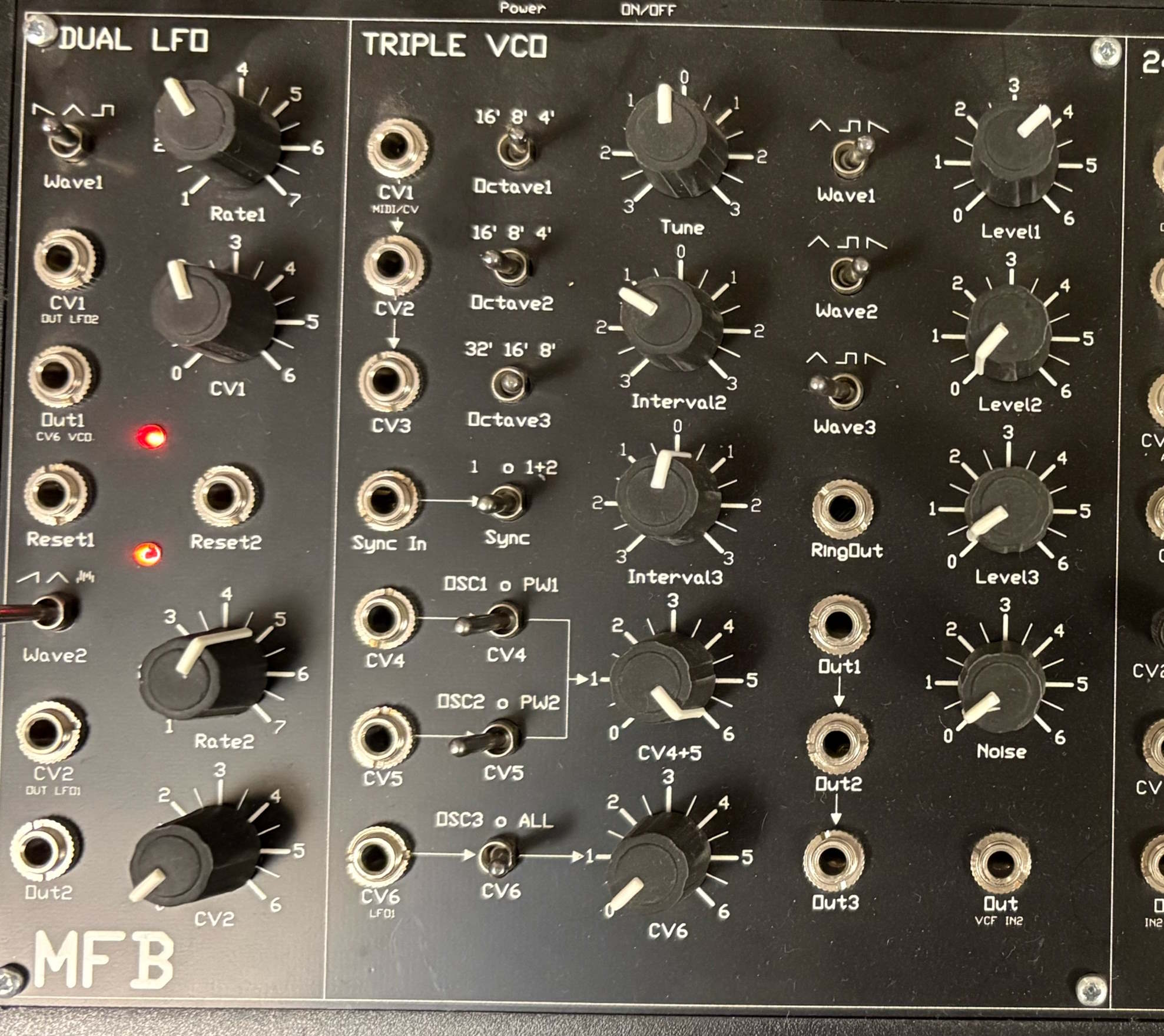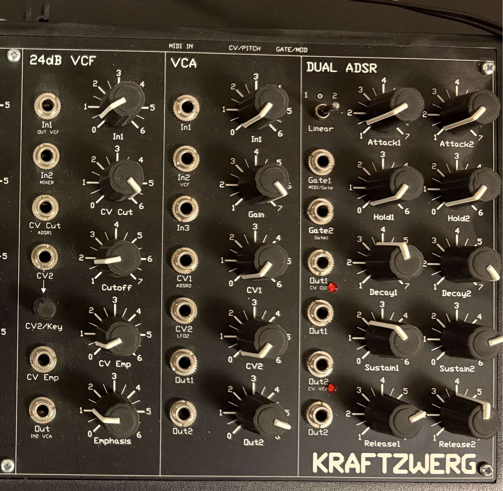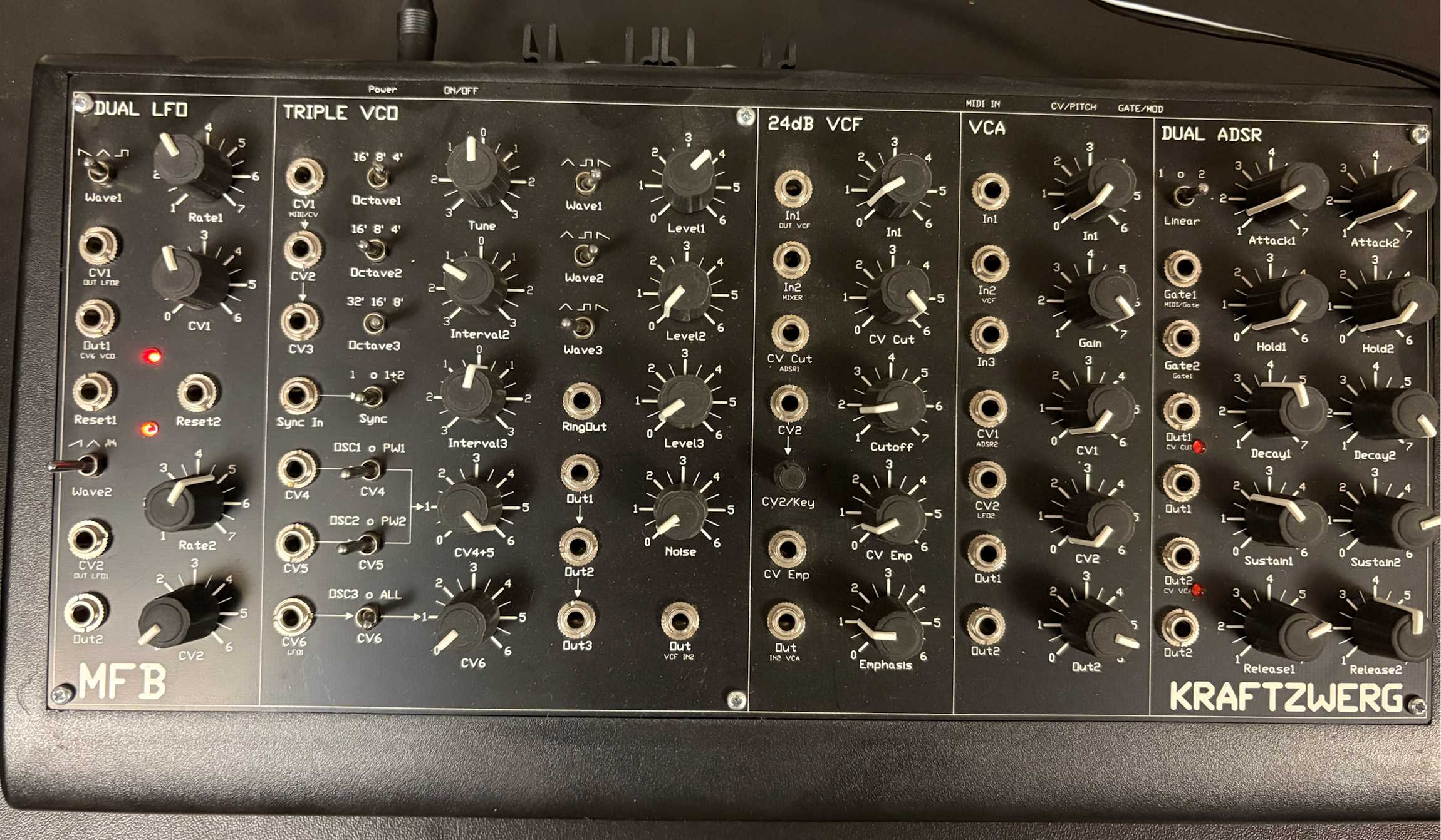 Moog Style Modular by MFB. This little thing is really powerful and punches way above its weight. In working condition. Nice and clean. The power jack is a bit wobbly though. |