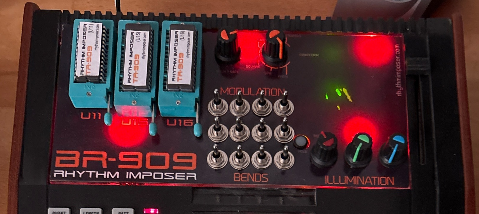 This is a heavily modified and circuit bent Alesis HR 16. The basic idea is that you can change the eproms and then mangle the sounds into oblivion by way of the knobs and switches which create all sorts of unpredictable and fairly brutal noises. The result can be anything from utter industrial magic to unusable garbage.