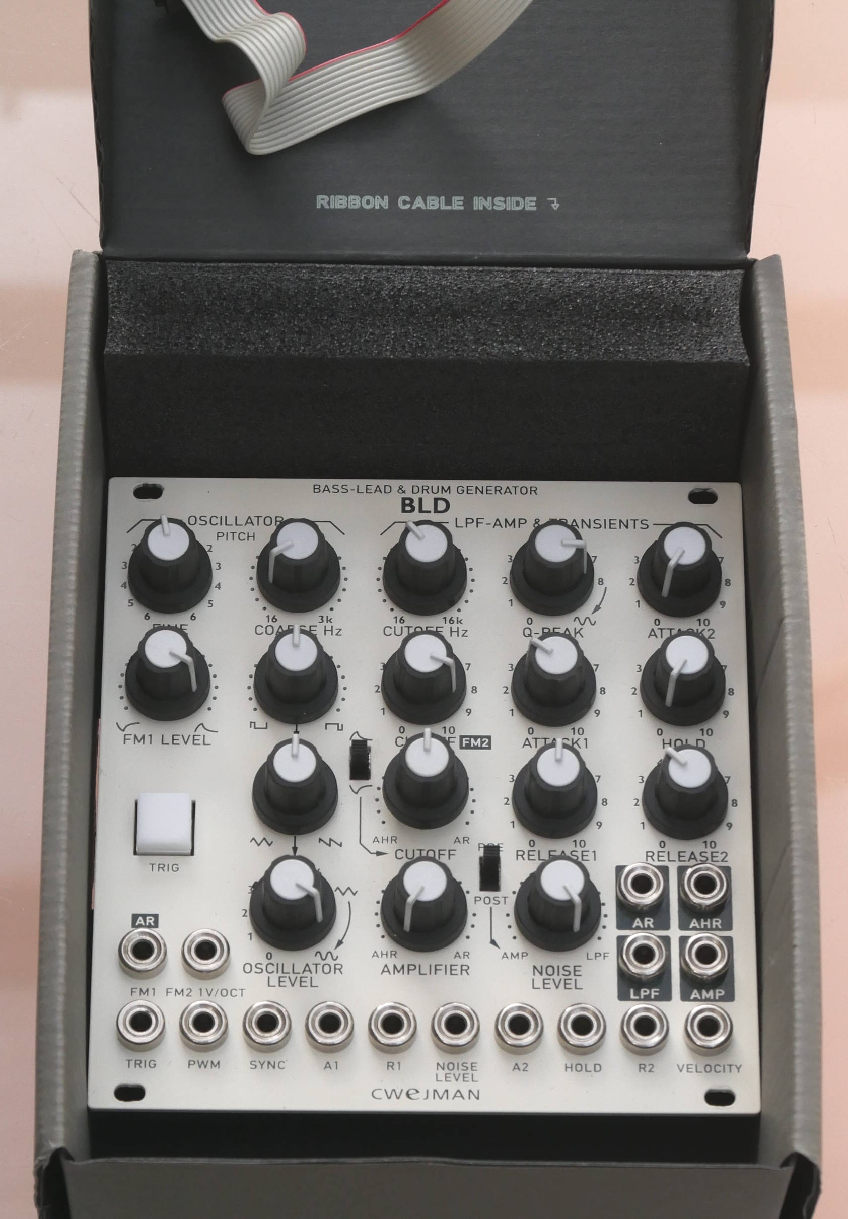 One of very many items from Calum Hunter's superb home studio. Boxed, looking almost unused, Cwejman's BLD with ribbon cable. Just a tiny bit of wear in the top rack holes so we are calling it near-mint. We'll cover the box with card: 3GBP |