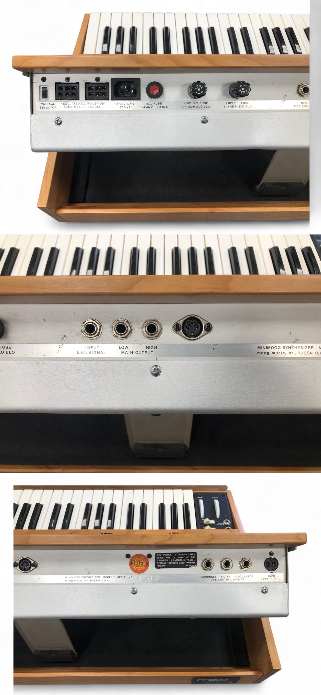 A very nice fresh restored from Lintronics vintage Minimoog Model D, serial 12854. Provide your own IEC lead for safer shipping. |