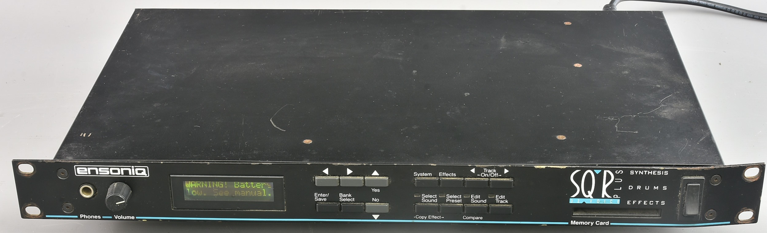 Surprisingly rare rackmount SQ Plus synth, in working order, and now with a new battery since we photo'd it - but with a nasty bang to the right hand end cheek which has caused the front plate to bend - see pics. **We have actually straightened that now, and it looks much better - see extra photos** Packing to include a UK or Euro mains lead 9GBP. |