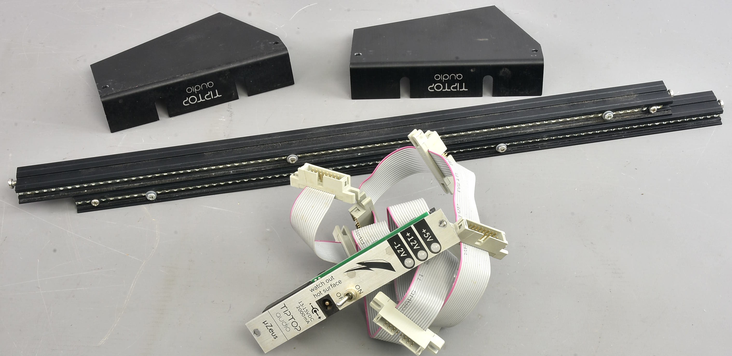 One of very many items from Calum Hunter's superb home studio. This set of rack ears, rails, uZeus PSU and loom looks in much less dirty condition than the previous one. NB the photo shows two rack ears the same side - this obviously got mixed up with the other identical lot but we have now swapped the ears to their correct homes. Packing: 6GBP. |
