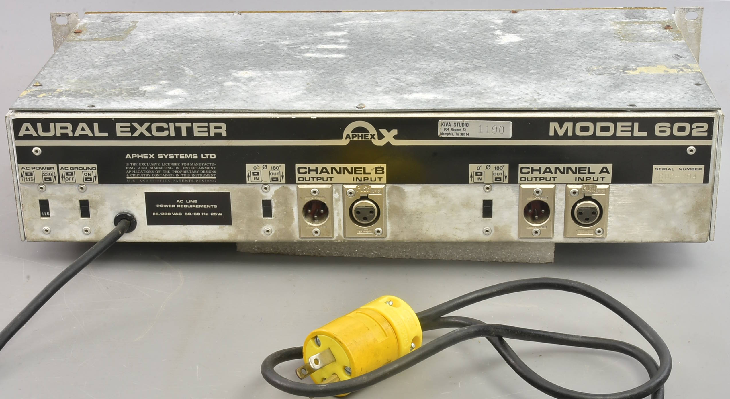***LOWER START PRICE !*** This example of the earliest aural exciter, serial number 602-394, was imported into the UK about three years ago at a cost of approaching 5000GBP. It's very much a crucial part of popular music recording history - the first units by Aphex were actually only available to rent annually at a pretty high price, because the effect was so sought-after and so mysterious at the time. They also worked on a royalty basis - payment-per-minute of recorded music using the Aural Exciter. It looks a bit tatty, with the front panel fascia coming away a bit at the left, and the rack ears looking their age. But it could easily be refurbished - the important bits are good. It is switchable power, but currently has a US mains plug. ***Now checked and in good working order.*** Packing 12GBP. |