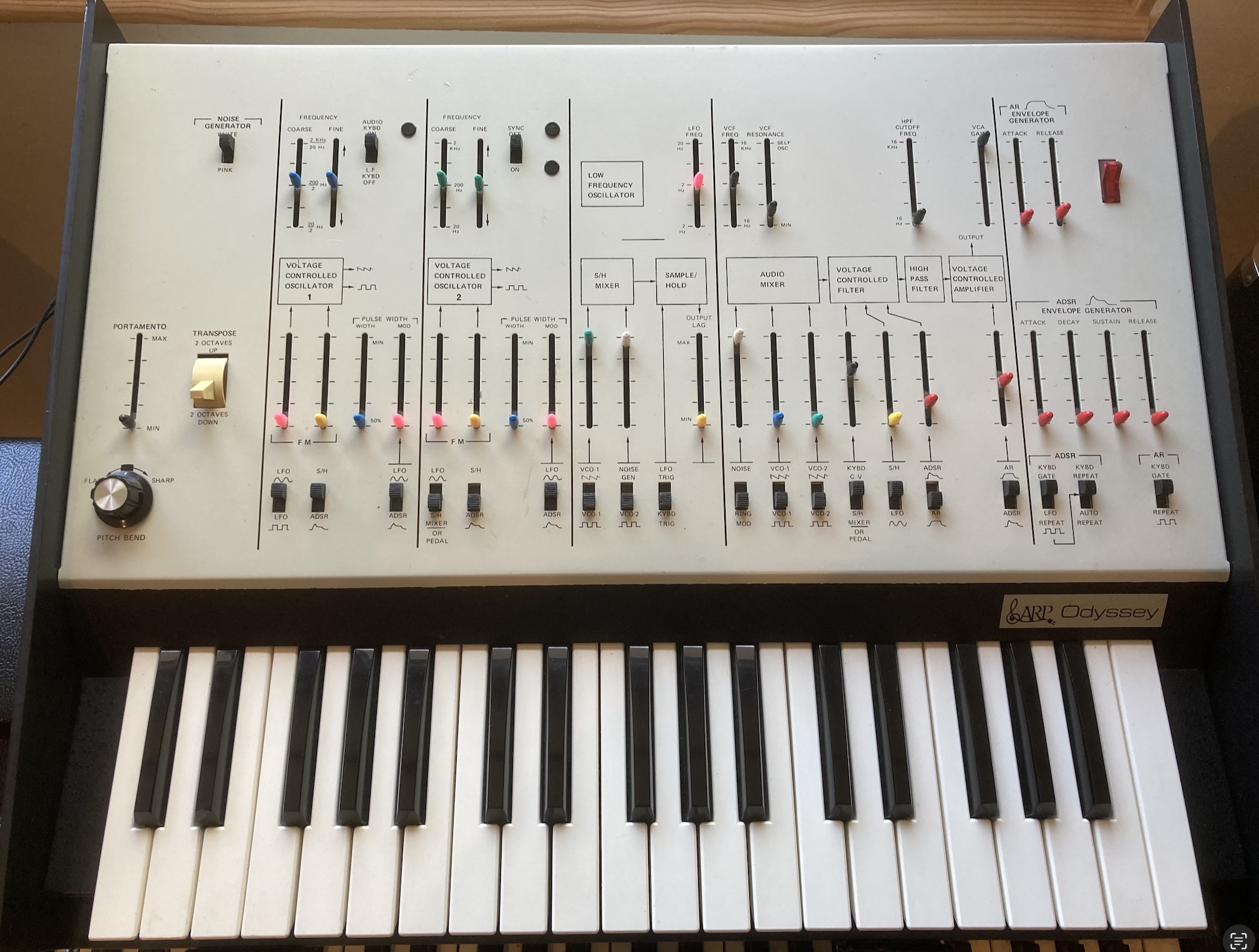 Beautiful and powerful Odyssey Mk1. One of my favourites for sheer cutting through power. This one has been in my studio for over 20 years with regular servicing by Kent Spong and James Walker whilst in UK and more recently 6 months ago by Antonus in Barcelona. It had a Kenton MIDI kit already retrofitted when I purchased it and I later added CV Gate inputs installed by Kenton in London for added flexibility. It comes with a full Flight case included, which I purchased separately from Vemia in 2017. Selling now I have retired. Not in second chance Sunday. |
