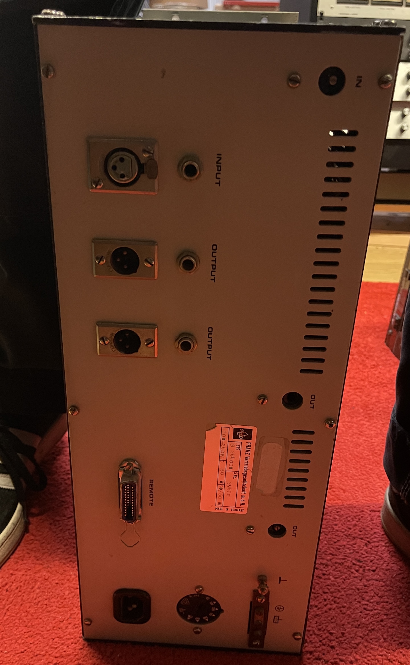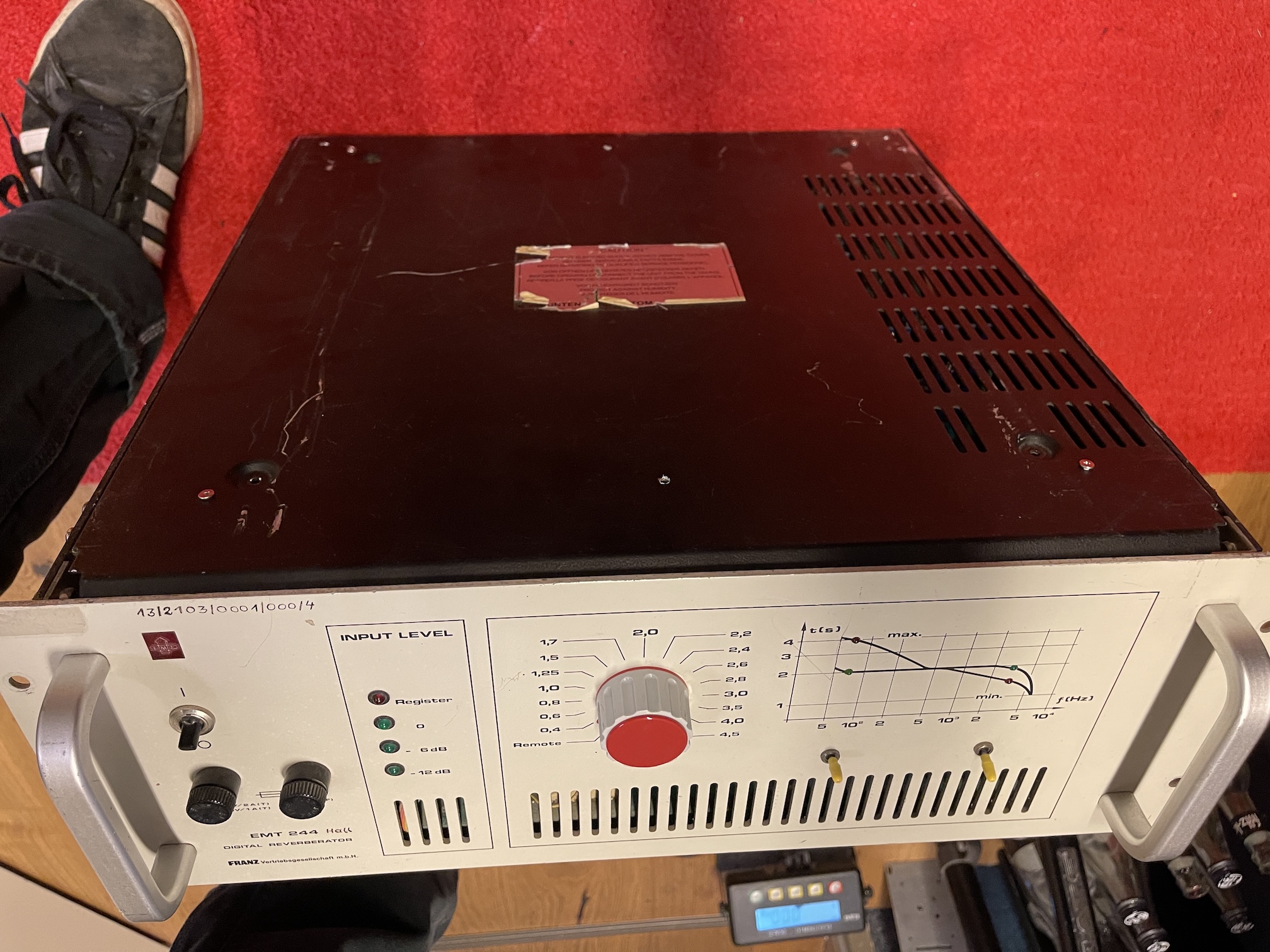 This is the absolutely epic 244 Reverb from EMT. This one was released in 1978 to provide the 250 hall algorithm for a more affordable 40,000 DM (adjusted for inflation! Unit is mono in/stereo out. Front panel controls are Decay time (selected by a 16 position rotary switch) and 2 toggles to tweak the EQing. This unit is a massive 4 rack units and 46cm deep. I bought this unit not working a few years ago and is one of two I have now working. They are very difficult to fix, this one will work for a long time now. |