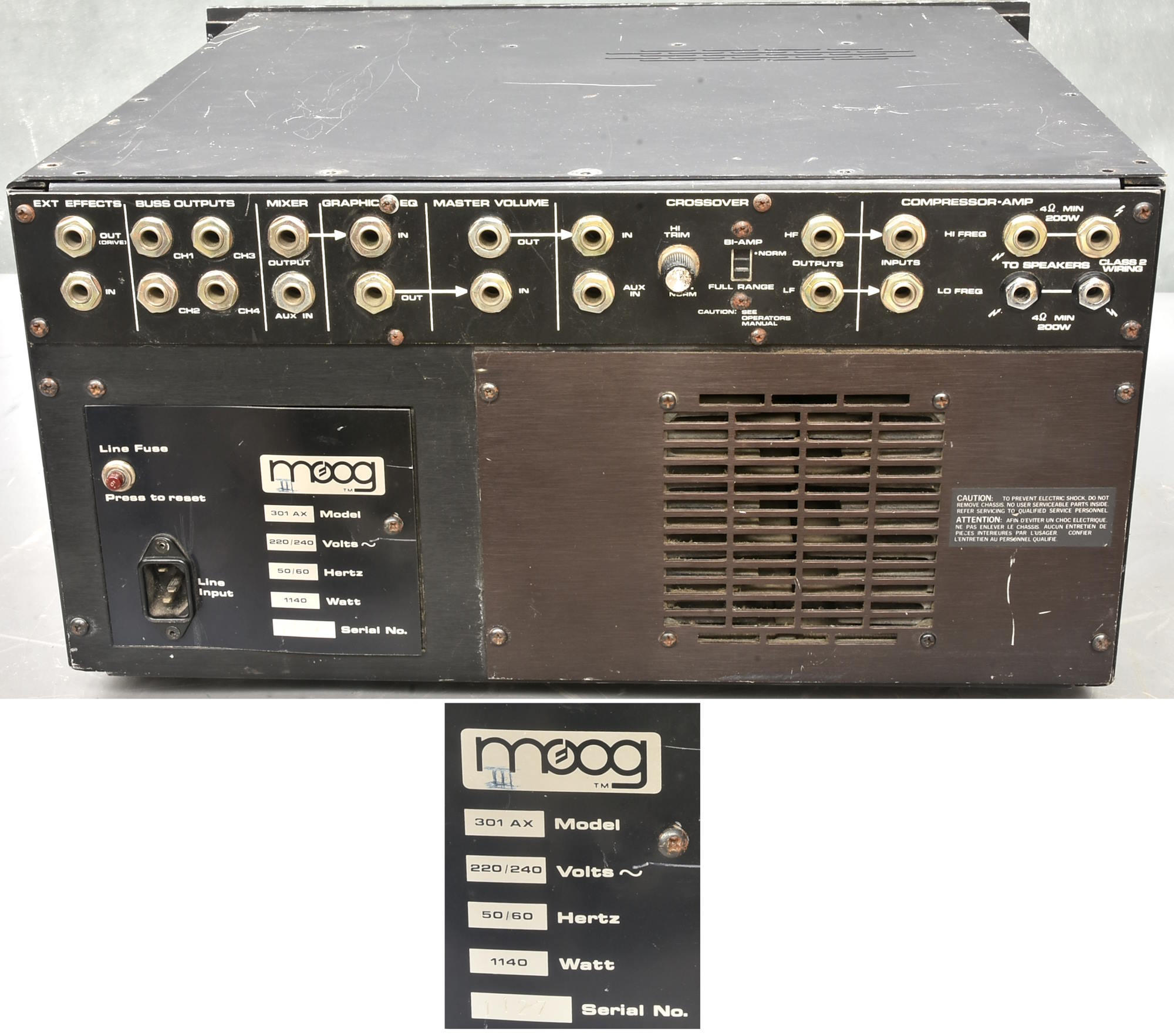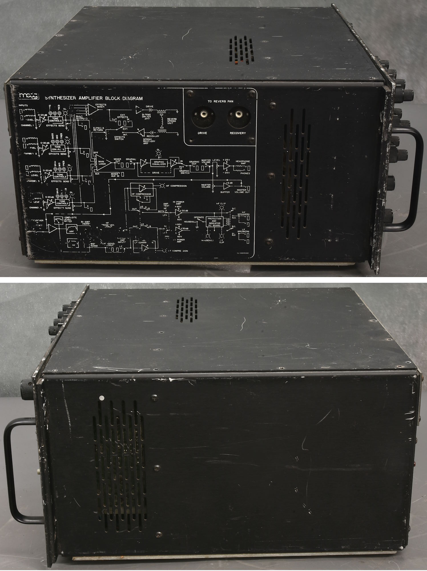 The second of these amazing Synamps in this auction. This one looks in the same cosmetic condition as the first one - i.e. the front panel is actually pretty good, with all knobs present and correct, etc, but the rest is a bit tatty. It is also UK voltage from the factory - but doesn't seem to be working at all. Probably a power supply issue?? This one does have the wooden case - check the photo for its cosmetic and physical condition, which needs some TLC. Supply your own IEC mains lead. Packing 30GBP. |