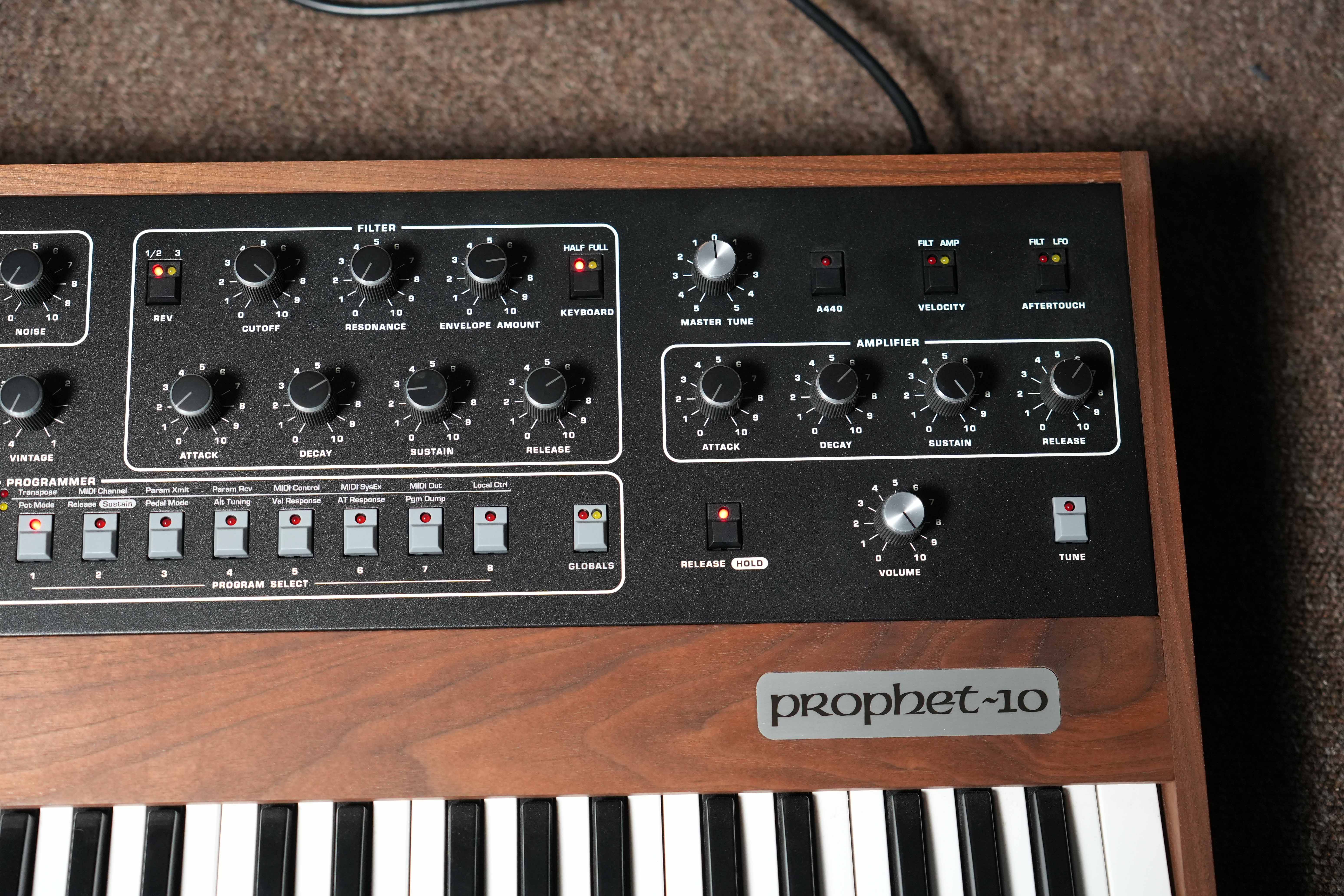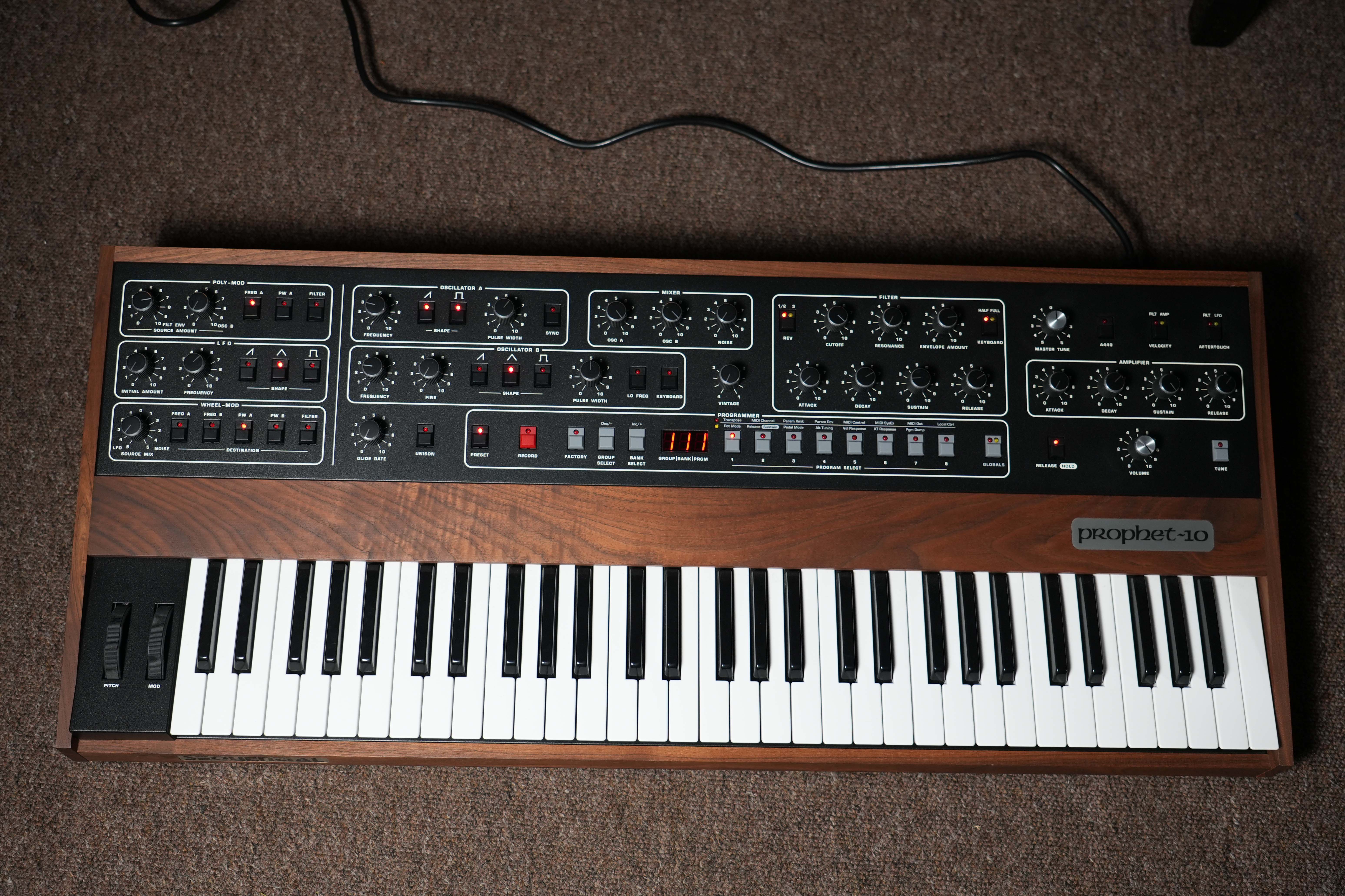 A fantastic example of the Sequential Prophet~10 rev4 reissue with really beautiful woodwork.