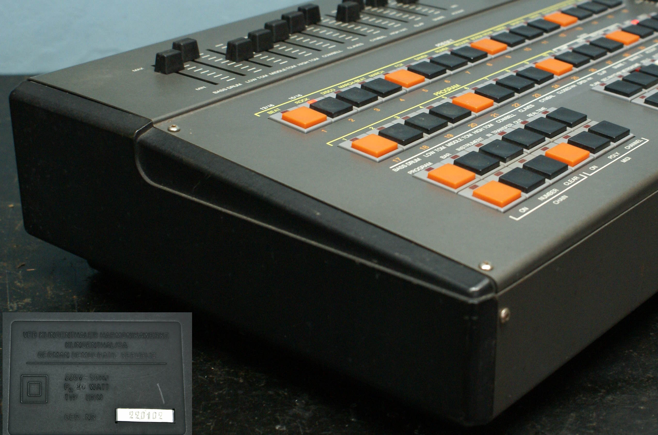 VEMIA note: Hainbach calls this machine the 'Ostblock 808'.: https://medium.com/@hainbach/beats-behind-the-wall-electronic-music-instrument-instruments-in-the-gdr-c9174ec803fd We can collect and pack: 12GBP.