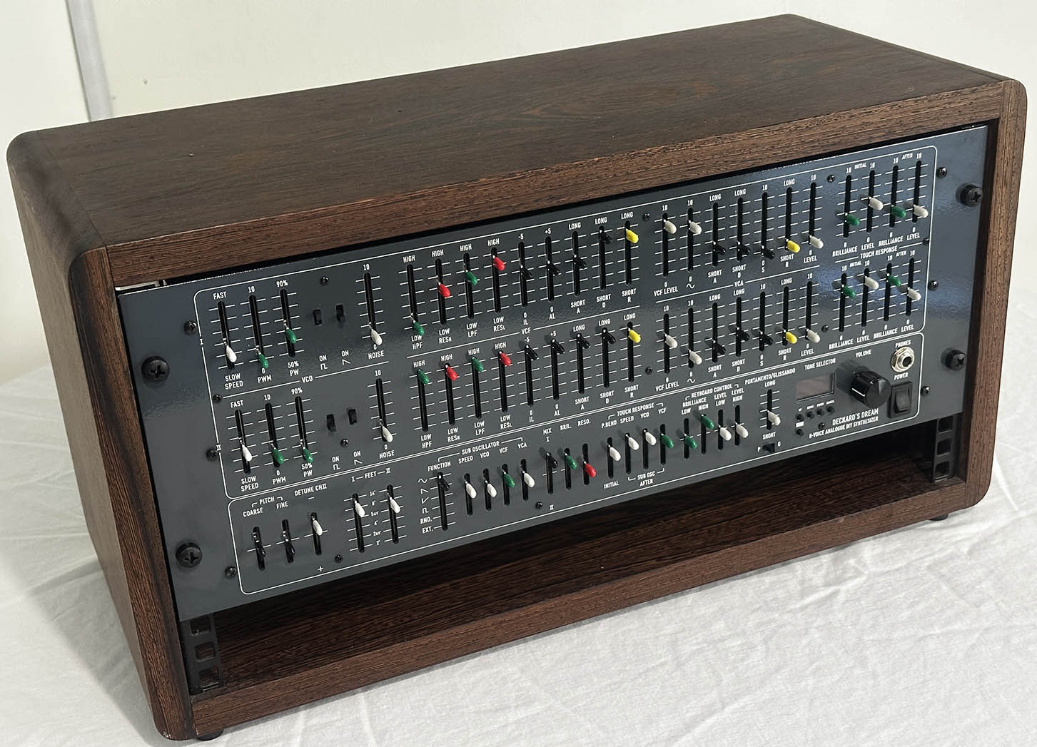Deckard’s Dream Mk1 synthesizer in near mint condition, housed in a custom Zebrano wood 5U rack case.
