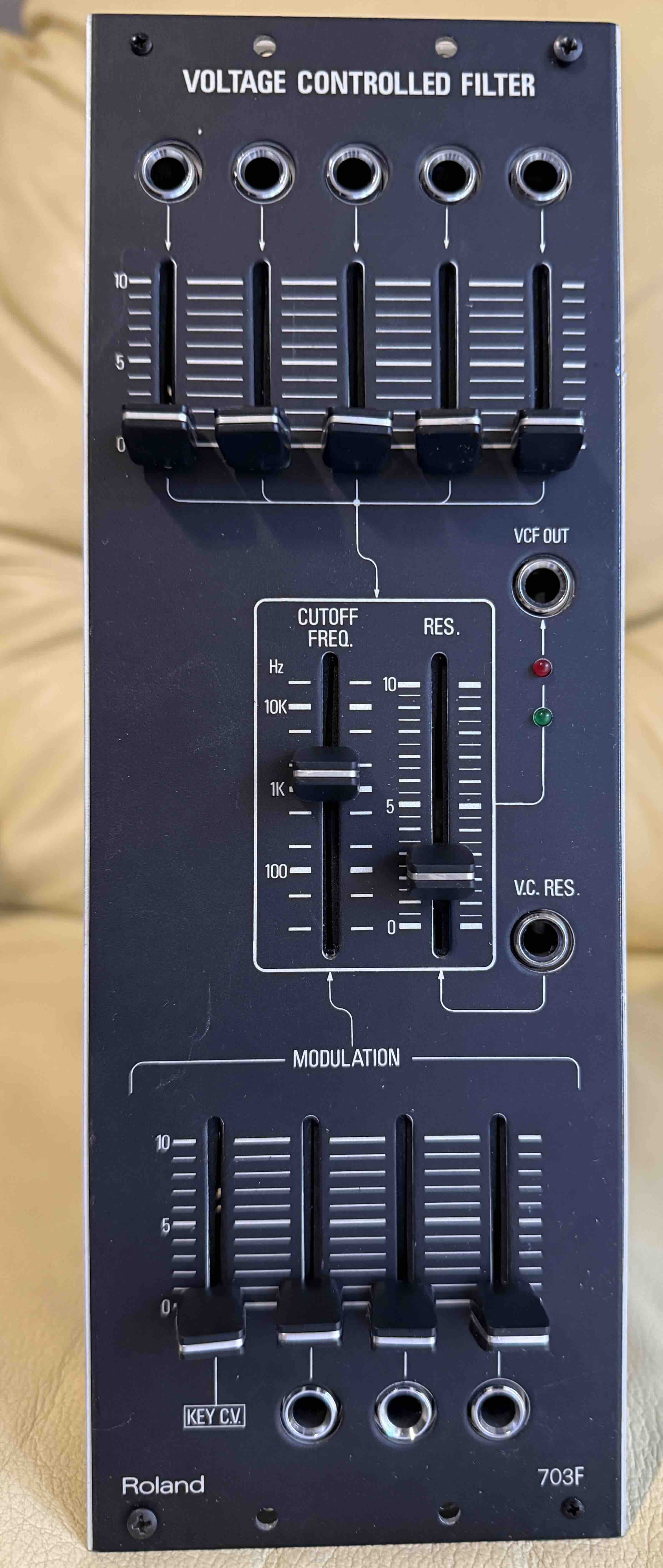 One of the most powerful VCFs ever. The sound of System 700 Roland, in very good (I would say excellent) condition. Everything works like it should. The 4 screws connecting the front panel to the frame are not original, sorry, but can easily replaced.