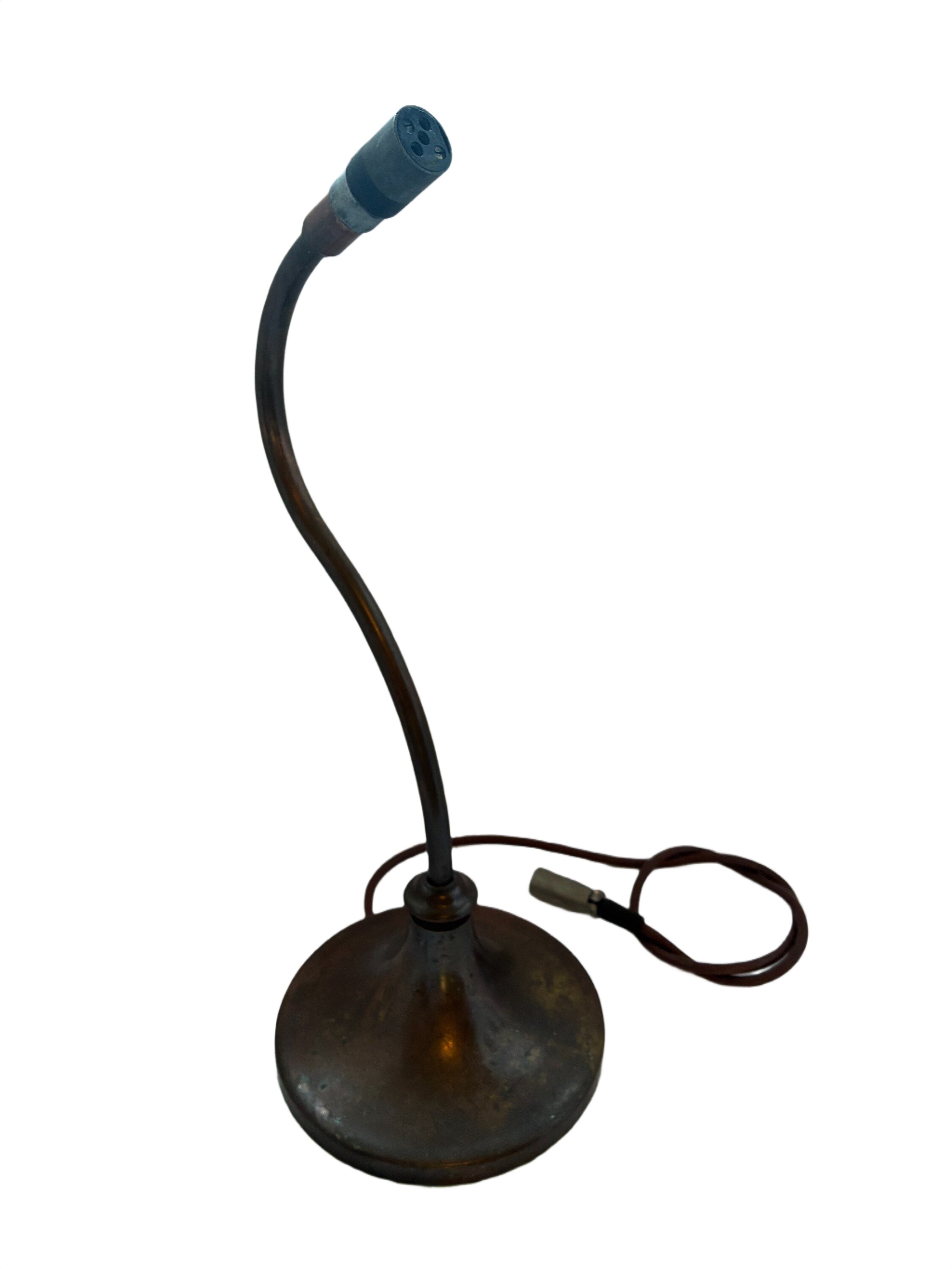 This is a BBC single swan neck in the medium of three heights that was made . The Connector is a 4069 type which mates with many of the STC range microphones . |