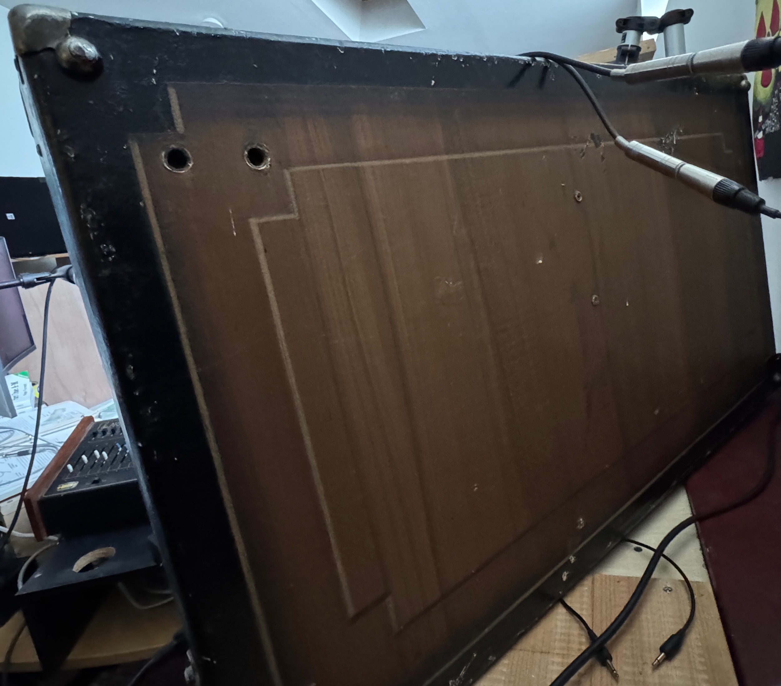 For some (strange) reason a previous owner founded fancy to paint part of the Tolex in a brown wood kind style (maybe to make it look more classic gear at a time analog synth were new tools ?). see pics.