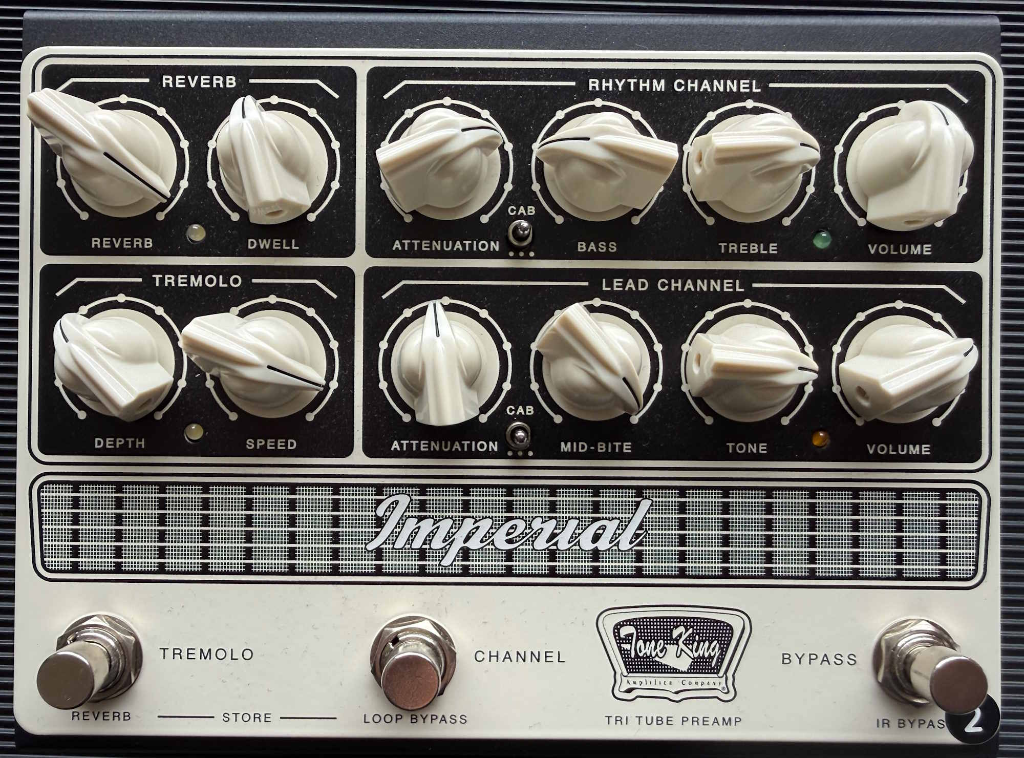 Vintage 50s, 60s and British rock tones powered by three actual 12AX7 preamp tubes inside. Also has convolution spring reverb, plus tremolo effects built in. VAT is payable by UK buyer. VEMIA can collect and cover box with card: 3GBP. |