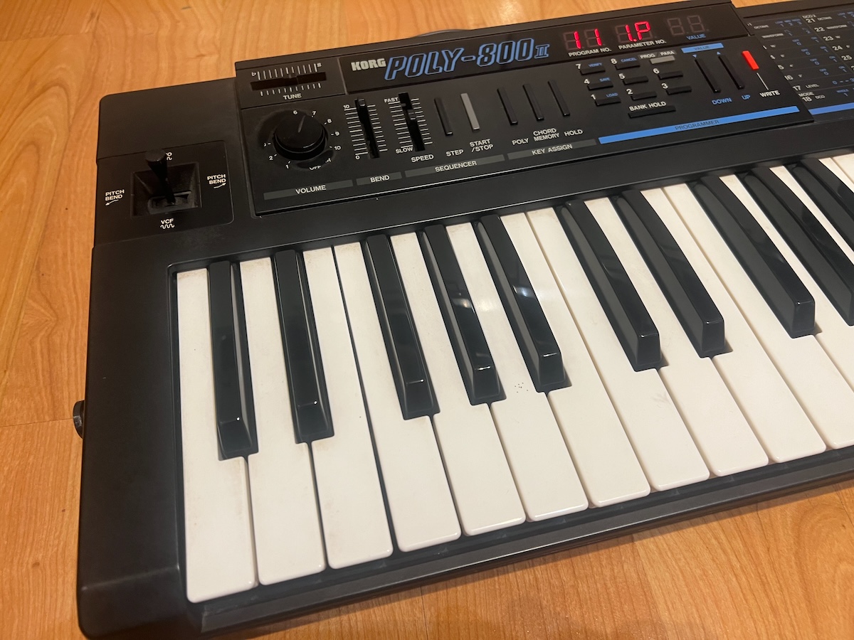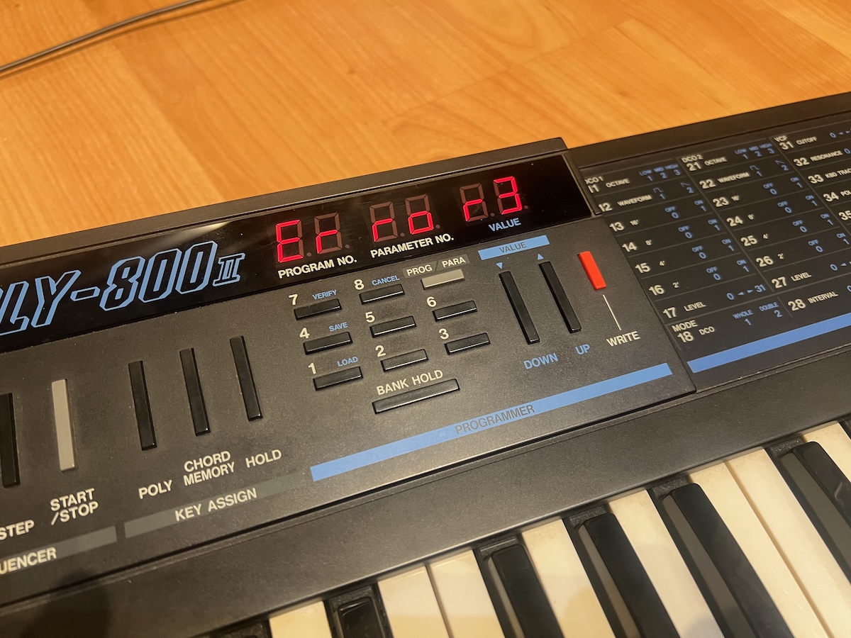 Korg Poly 800 II Hawk expanded (Sysex, MIDI CCs for all parameters, Arpeggiator, Unisono, 4x sound banks, MIDI Velocity, 4 LFOs, etc.) and Atom Hawk (extreme resonance, Filter FM) https://www.hawk800.com . It has to run the boot sequence twice (see pictures) due an minor error in EPROM (the Hawk author recommends to flash new OS, since it was a factory mistake due new OS version launch), but it does not affect the functionality (after two boot sequences + 3 seconds, it runs fine). |