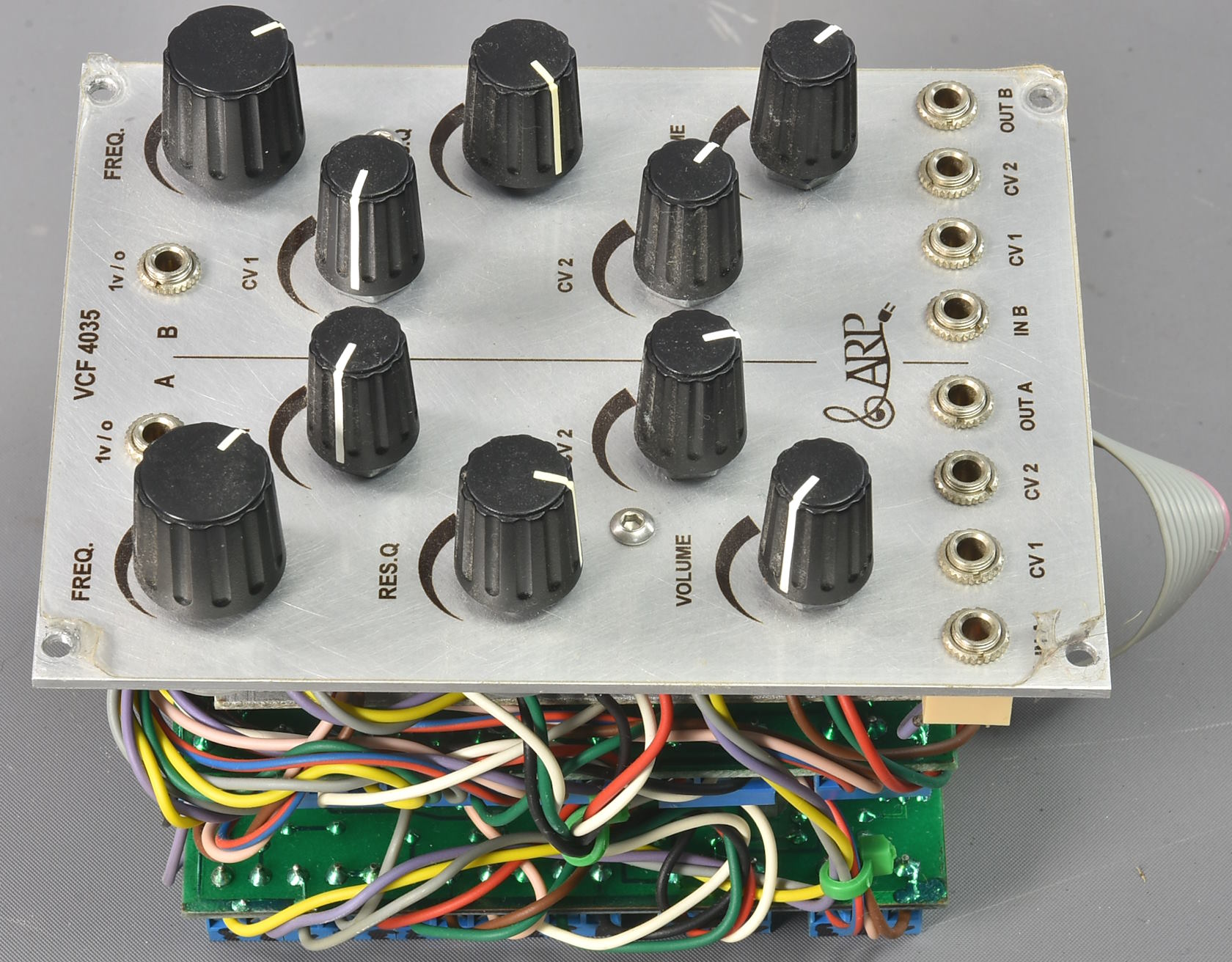 15GBP start bid to beat. Multi-layer deep eurorack module labelled with the ARP logo. Not in Modular Grid, so obviously a very small or even unique production run. The legend is on a stick-on plastic sheet which is starting to come adrift a little at the corners near the screw holes. Sold **as is, untested**, but with no obvious reason to assume anything is not working. It's a question of the owner once again thinning the herd of hundreds of Eurorack modules. There may be modules that were put in the 'reserve' case because they had a fault, or, just as likely, all these modules may just be duplicates, or surplus to the owner's needs. Ribbon cable, no screws. Packing 6GBP. |