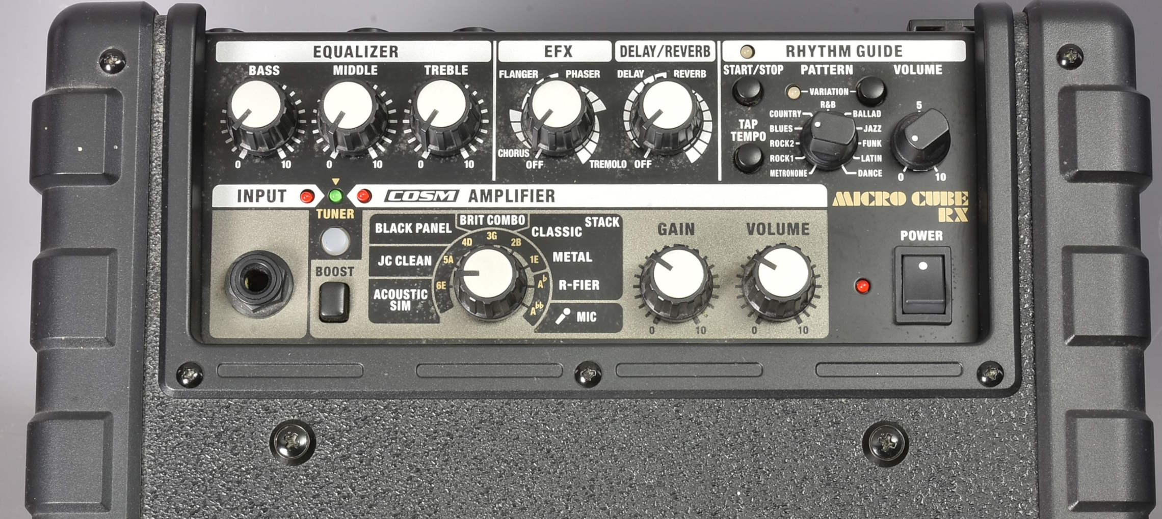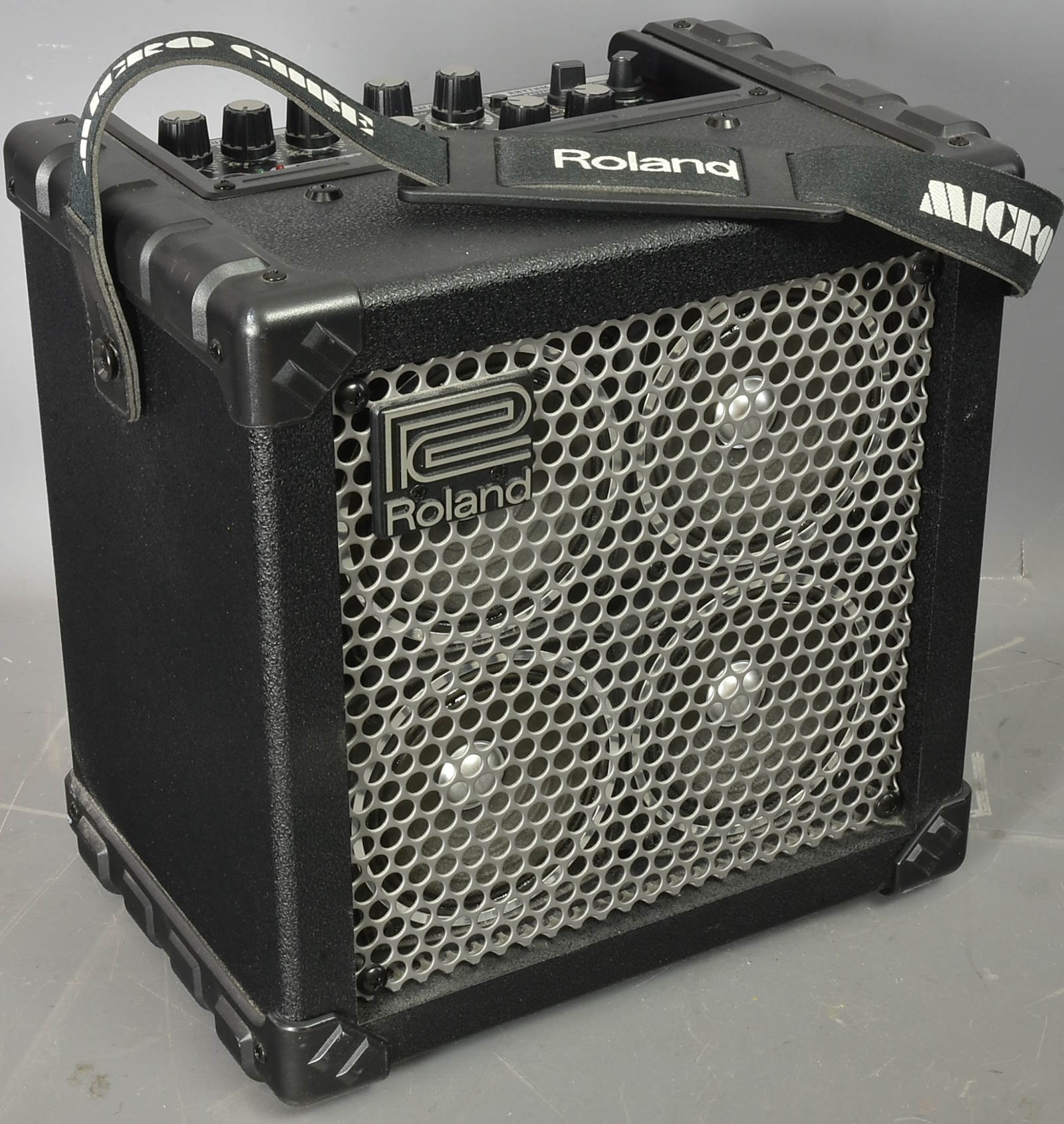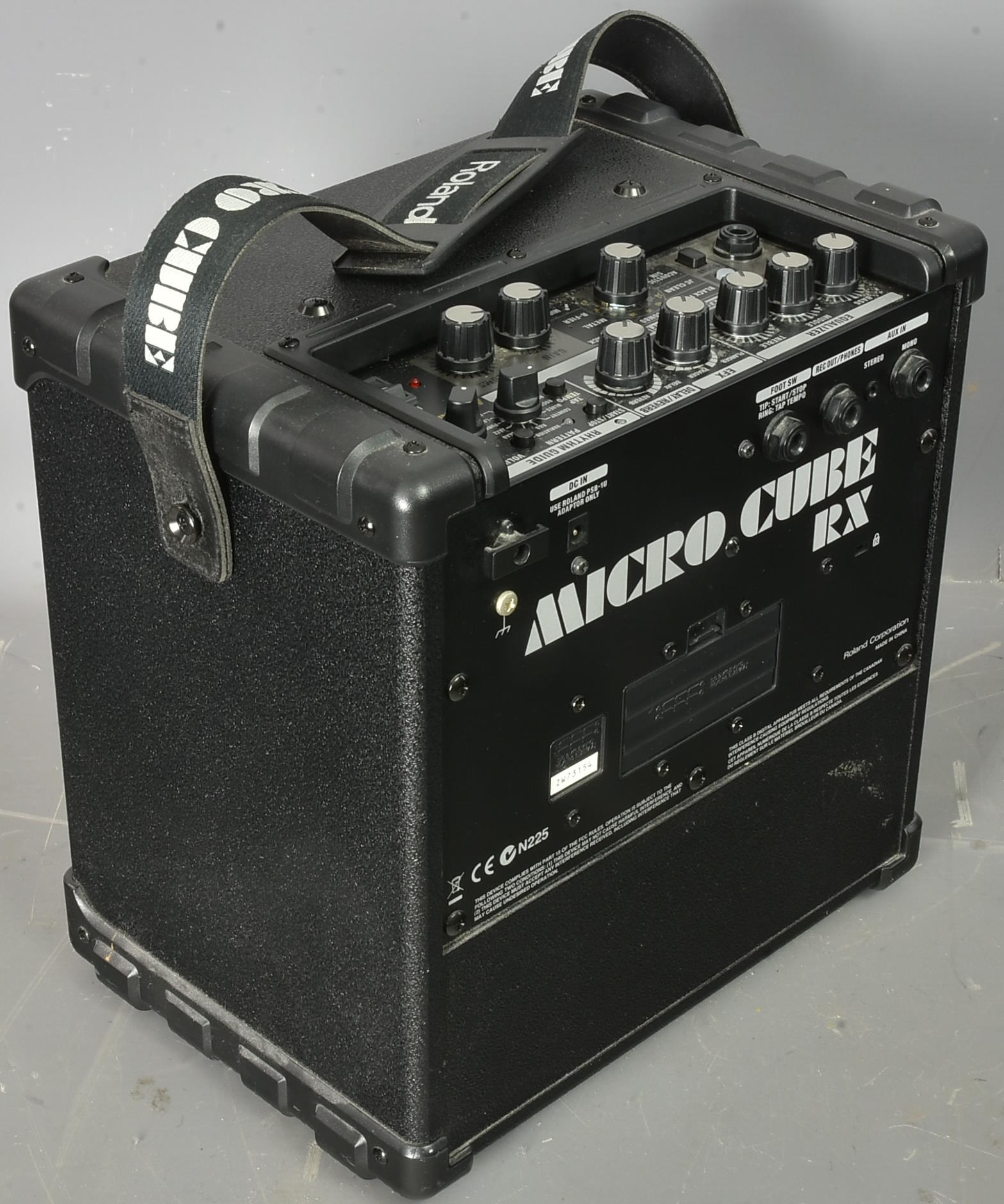 Incredibly capable little amp - actually stereo - with modelling, effects, and a rhythm guide. Can be totally portable used with 6 AA batteries, but can be used with a Roland PSB-1U adaptor - not included unless we find it. Carrying strap - but this doesn't look like it's been carried about much if at all. Packing 12GBP. |
