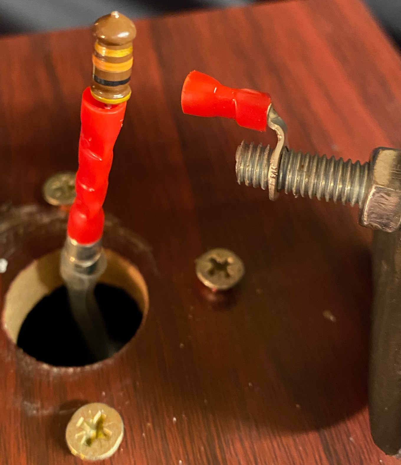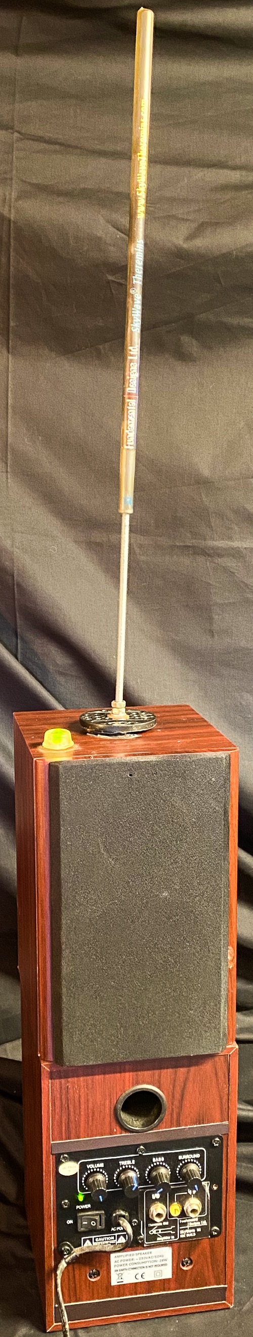 It has a magnetic connector so the aerial can be removed for transport. I didn’t figure that out so broke the connector just above the magnet itself. It’ll need resoldering or a new resistor installed, easy for someone with a soldering iron. When you turn it on it still makes theremin-esque noises without the aerial actually connected, so I’m confident it’ll be back in good working order once the aerial connection is resoldered in place. VEMIA can collect and pack: 24GBP.