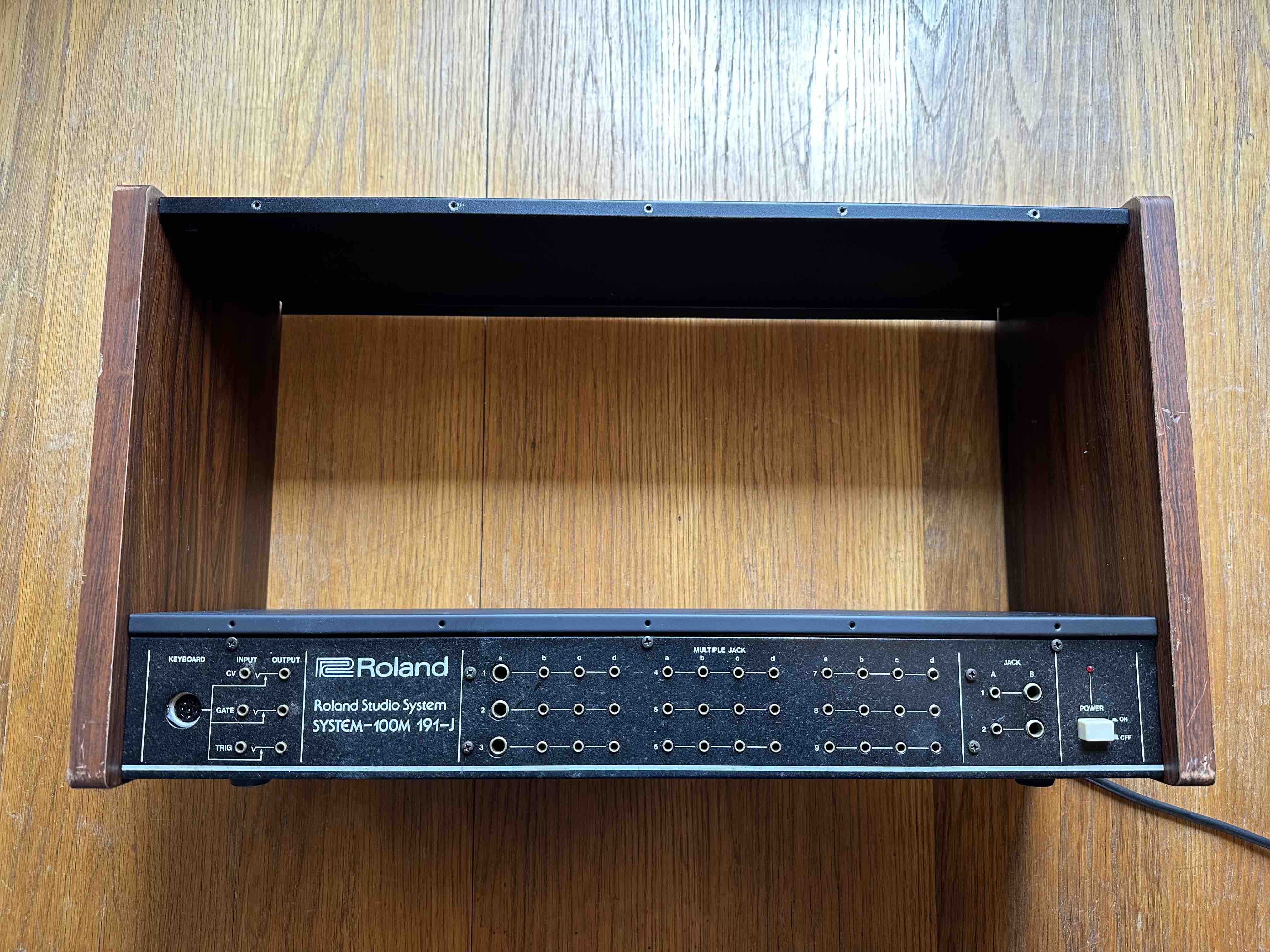 191-J 5 rack, just serviced at Synthsyg in Denmark, and got a new toroidal transformer for less hum, and cleaned all jacks, and got some new ones ond the back. There was some rust on the back, so it has been sanded down and painted again. |